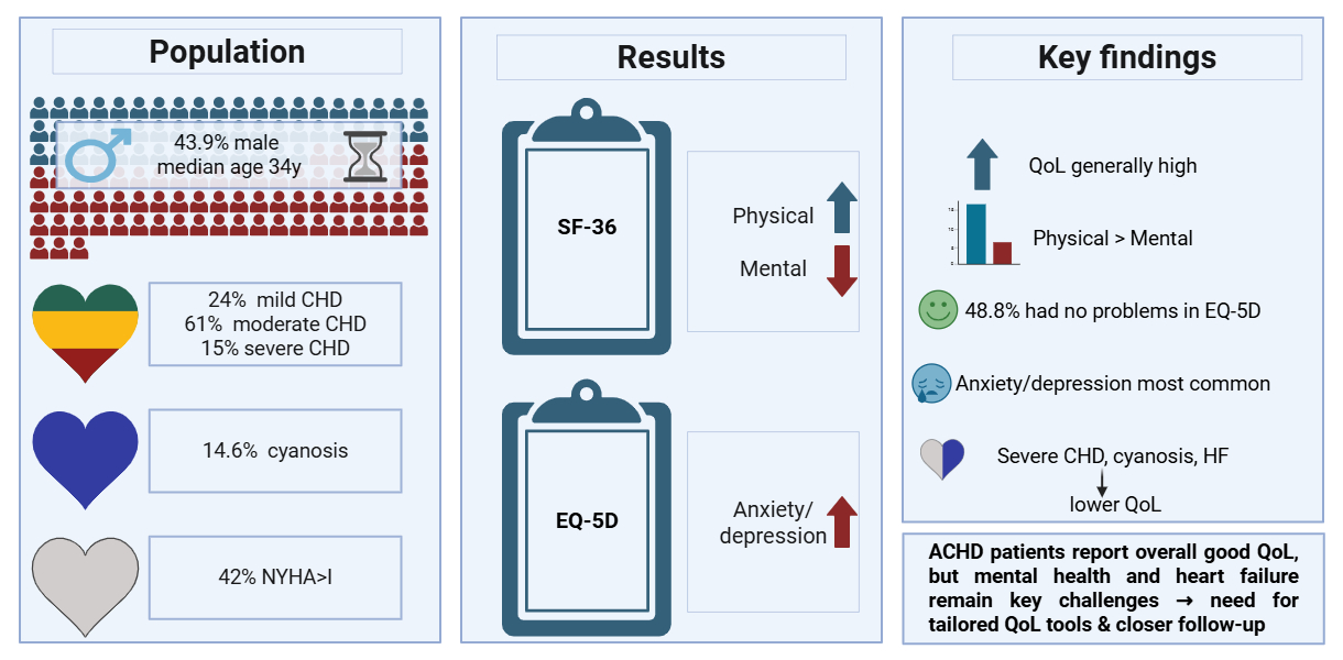 - Ly, R.; Karsenty, C.; Amedro, P.; Cohen, S.; Domanski, O.; Godart, F.; Radojevic, J.; Vaksmann, G.; Naccache, N.; Boubrit, A.; et al. Health-Related Quality of Life and Its Association with Outcomes in Adults with Congenital Heart Disease and Heart Failure: Insight From FRESH-ACHD Registry. J. Am. Heart Assoc. 2023, 12, e027819. [Google Scholar] [CrossRef]