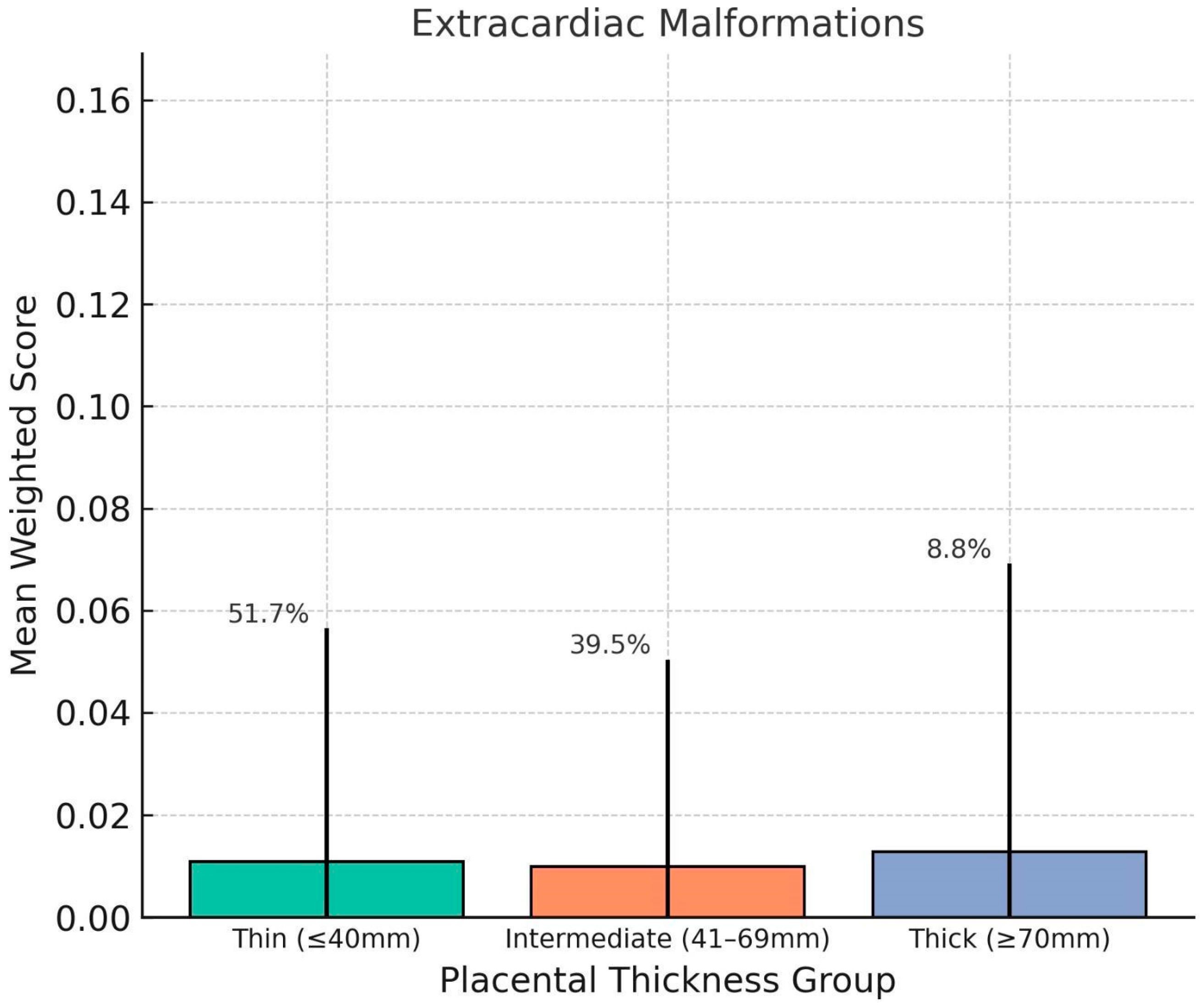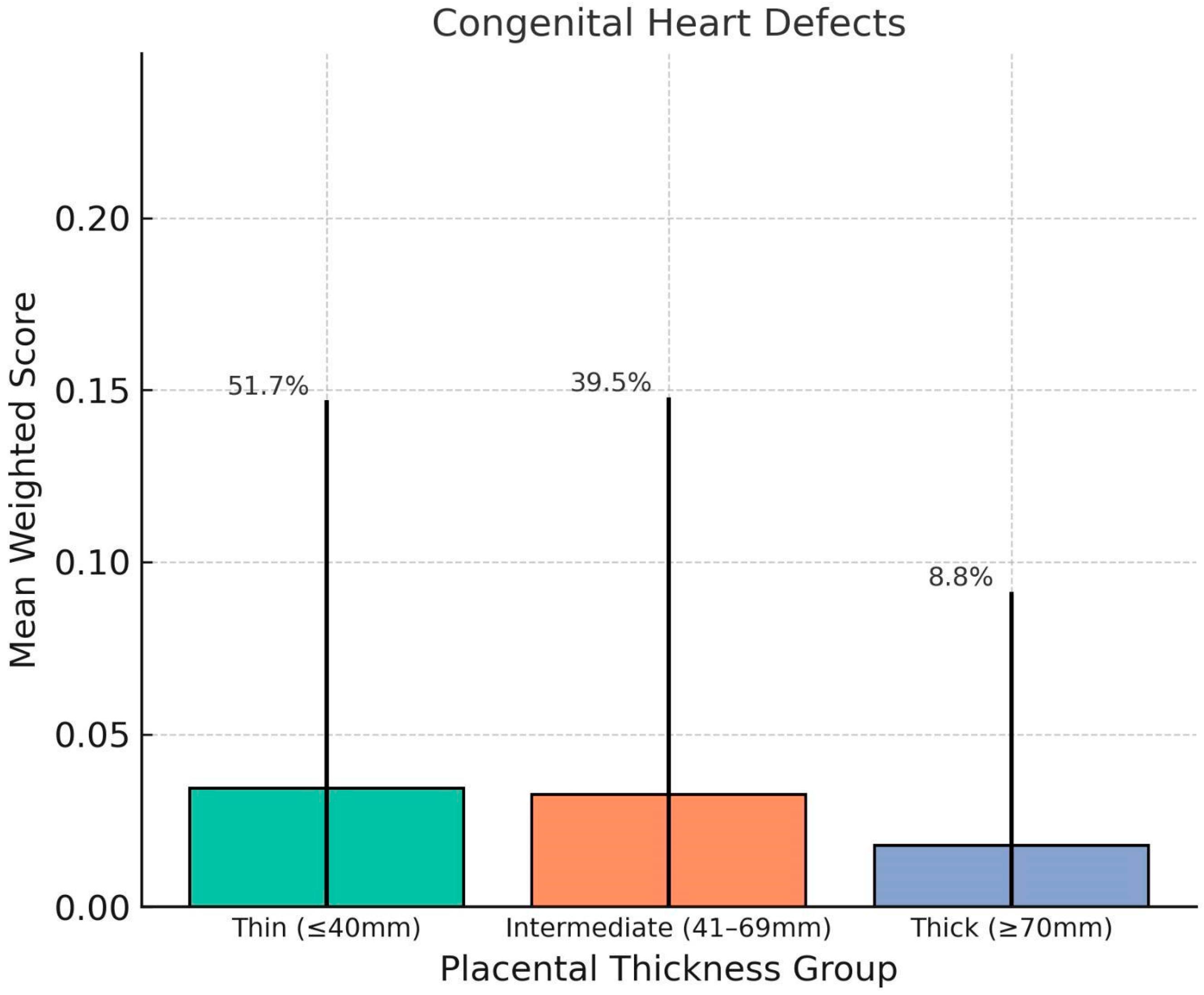 Weighted Scores Across Placental Thickness Groups