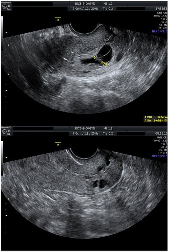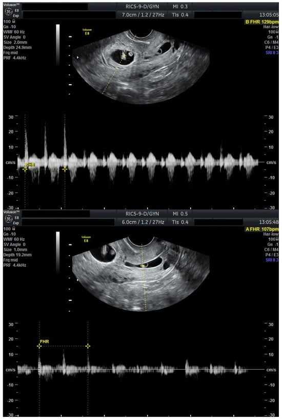 Doppler assessment is particularly valuable, as increased vascular flow surrounding the gestational sac correlates with hemorrhagic risk and may guide the timing of the intervention [,].