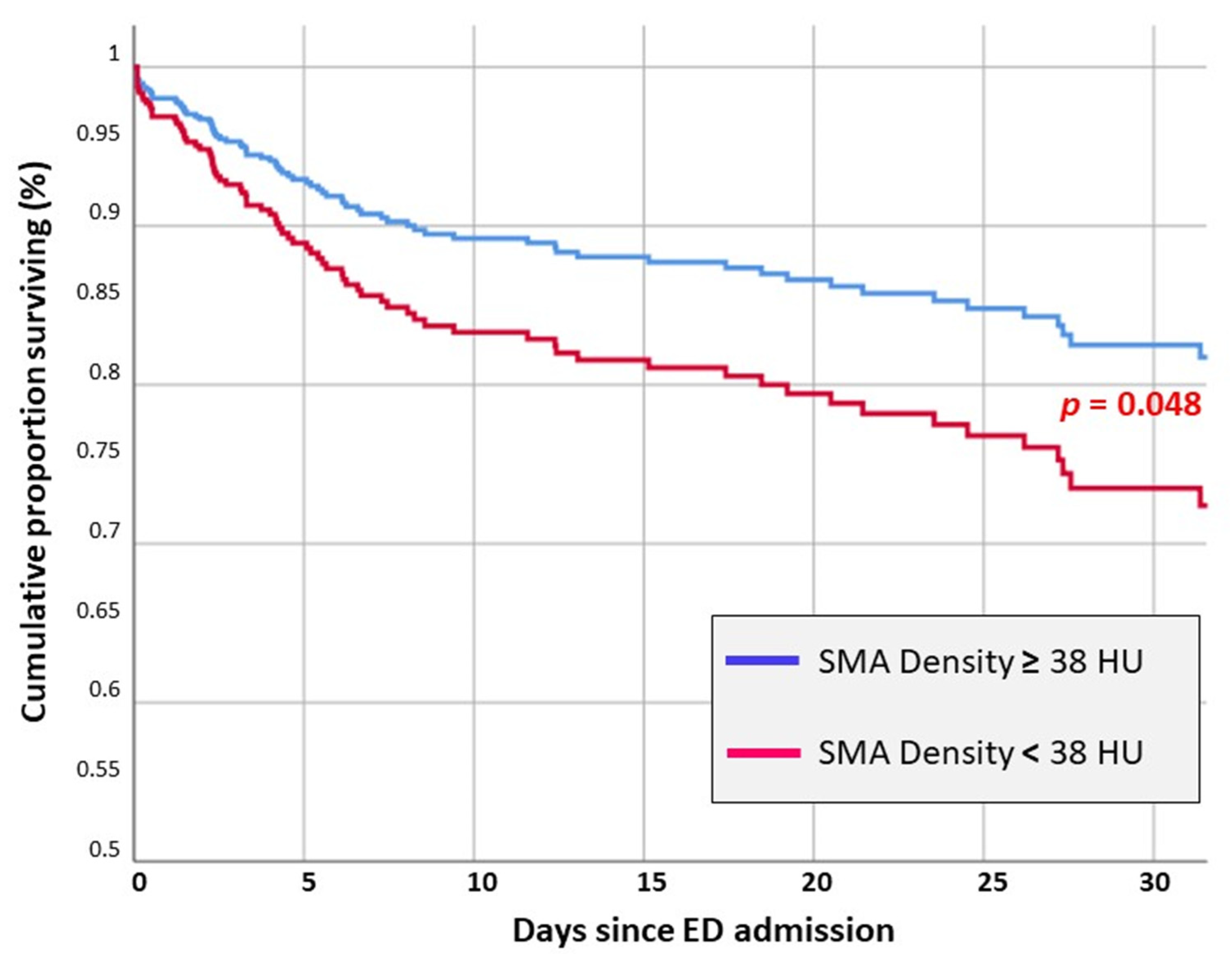 | SMA Density < 38 HU | 0.519 | 4.836 | 1.68 [1.06–2.67] | 0.028 |