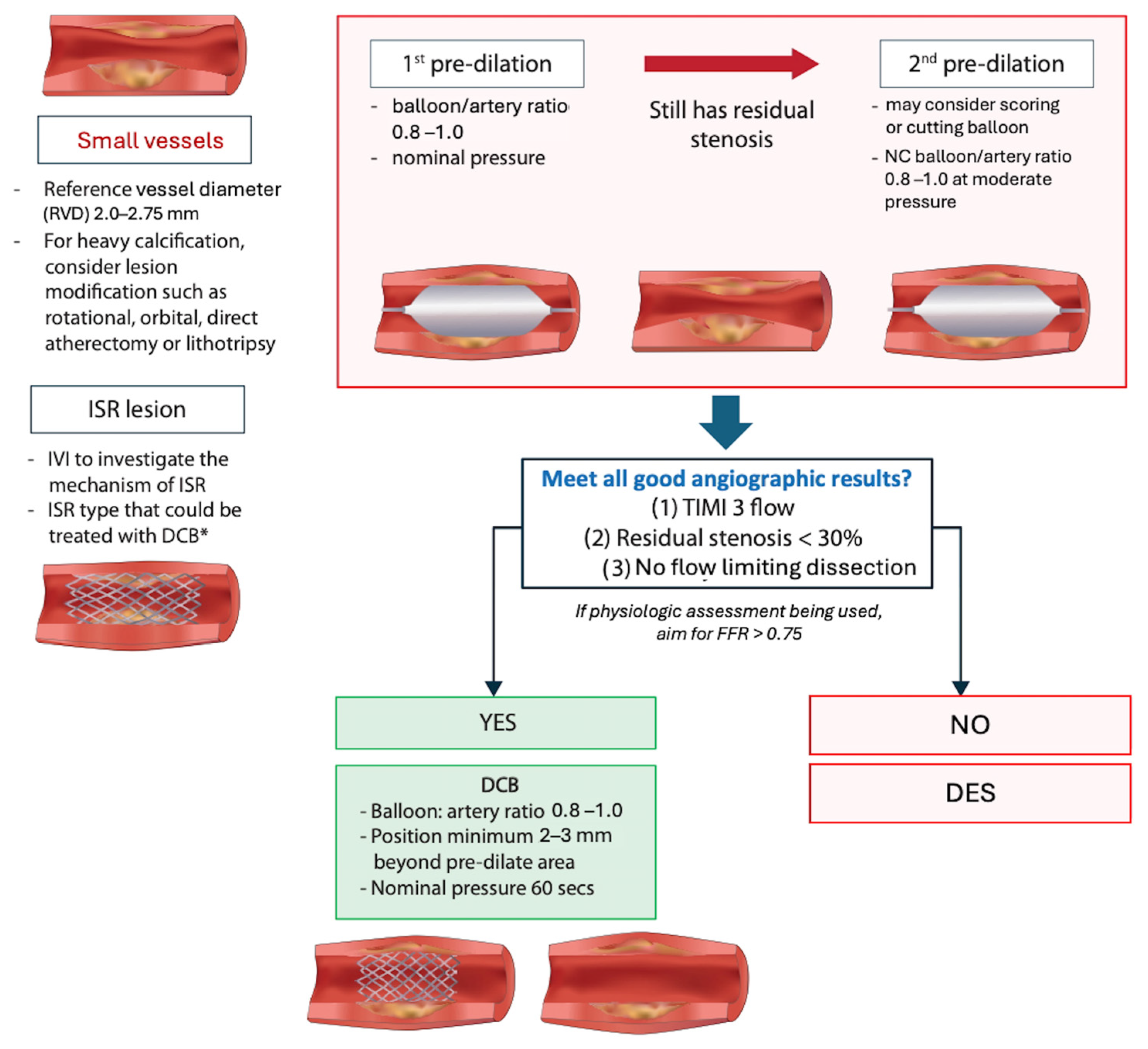 - Improving the precision of PCI: Physiologic assessment can identify the location of the residual target flow-limiting disease, ensure successful lesion preparation, and detect complications before DCB intervention.