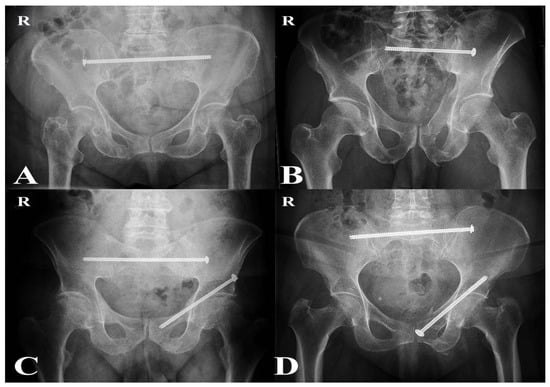 - Elsissy, J.G.; Ruckle, D.E.; Lebrun, C.; Johnson, J.P. Pelvic ring injuries: Stable or not? J. Am. Acad. Orthop. Surg. 2024, 32, 99–107. [Google Scholar] [CrossRef]