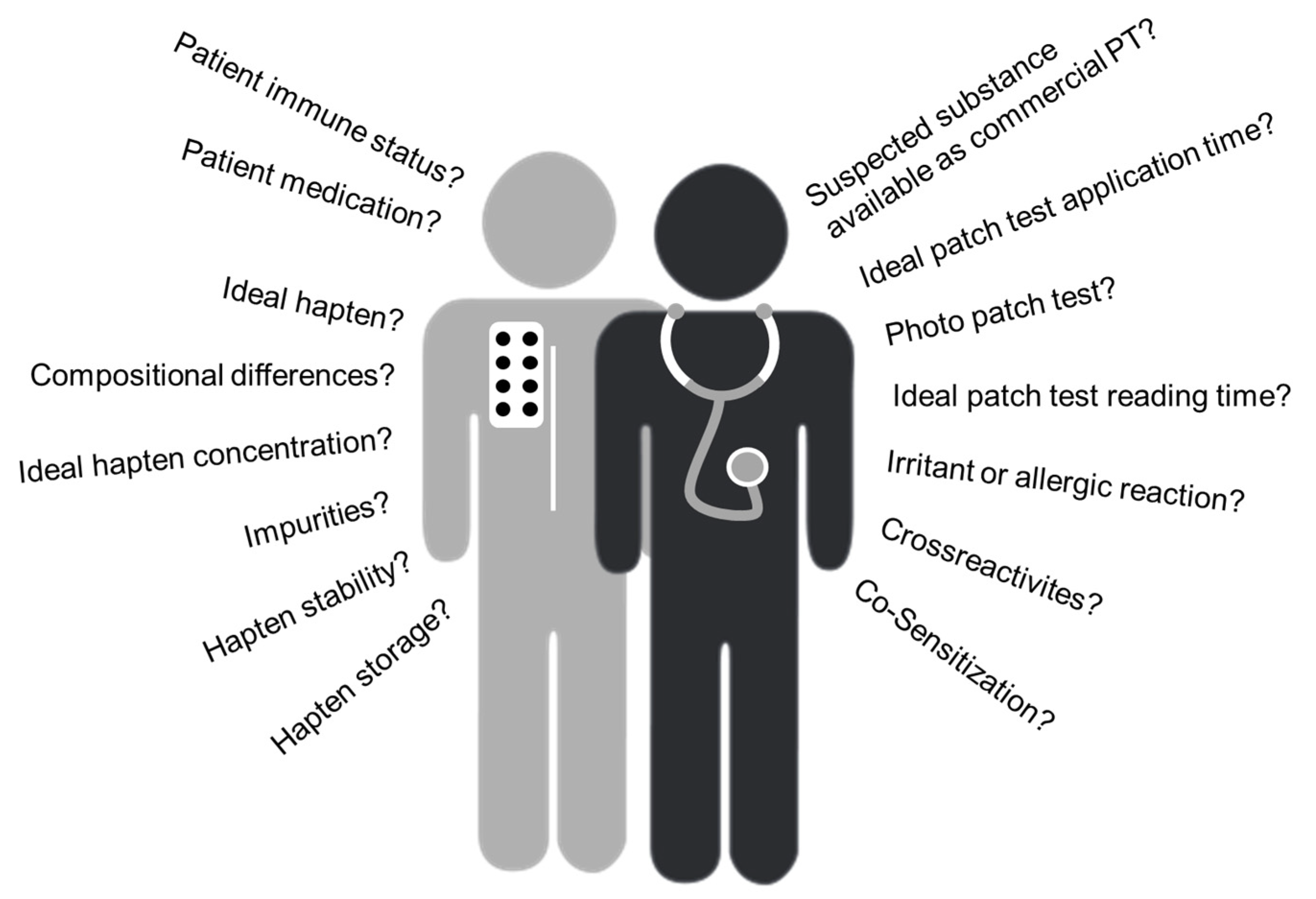 Reactions between the hapten and the container | Depending on the nature and extent of interaction: - risk of false-negative results - risk of false-positive results - irritant reactions | - assessment of the suitability of the container closure system - control of patch test quality in guideline-conform stability studies |
