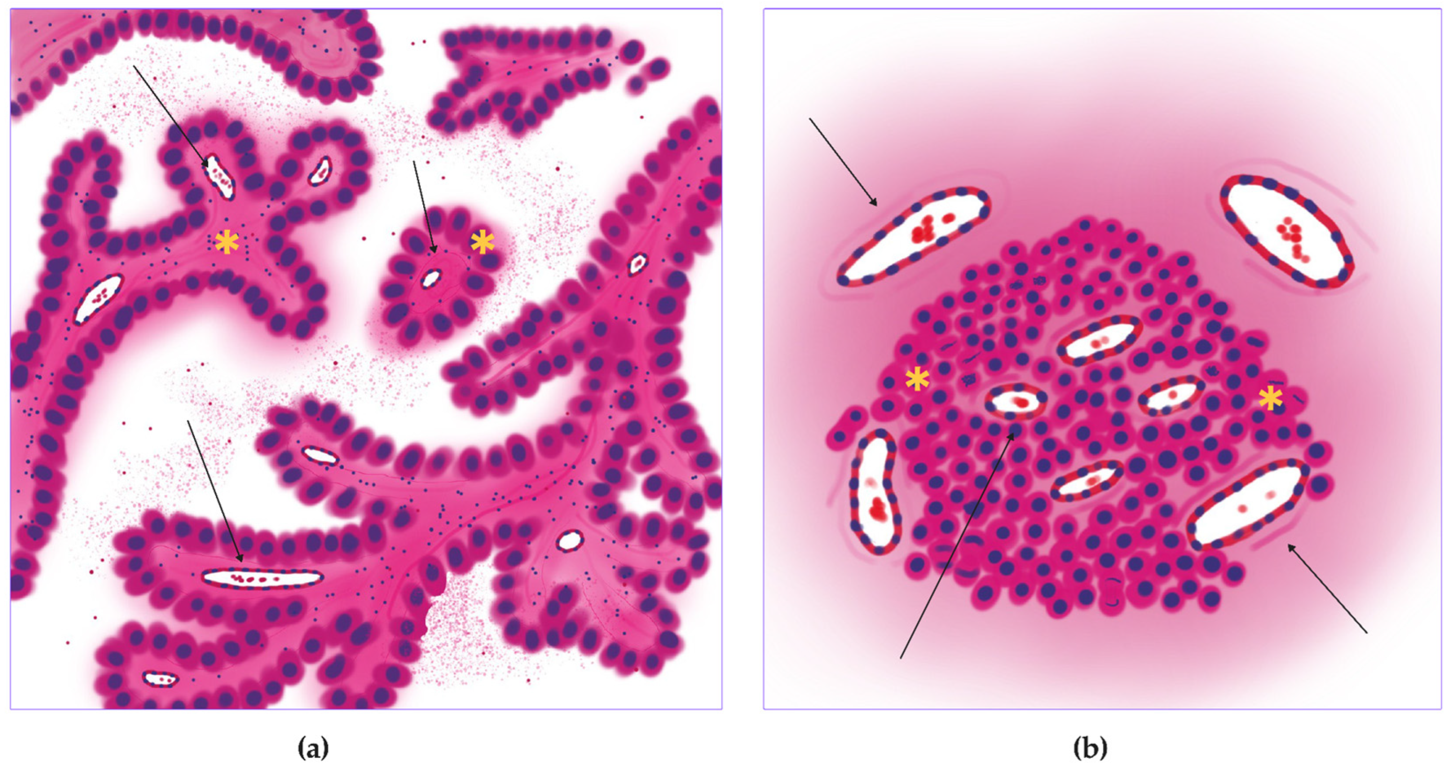- Timakova, A.; Ananev, V.; Fayzullin, A.; Makarov, V.; Ivanova, E.; Shekhter, A.; Timashev, P. Artificial intelligence assists in the detection of blood vessels in whole slide images: Practical benefits for oncological pathology. Biomolecules 2023, 13, 1327. [Google Scholar] [CrossRef] [PubMed]