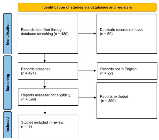 We conducted a systematic review following standard PRISMA (preferred reporting items for systematic reviews and meta-analyses) guidelines [15] to analyze all reported cases of cervical anterior meningocele without dysraphism from 1837 to 2025 (Figure 2 and Supplementary File S1). The systematic review is registered on Open Science Framework. A comprehensive search was performed in the PubMed, Cochrane Library, and Scopus databases using the keywords “Meningocele,” “Cervical,” and “Anterior.” This search yielded 480 studies, of which 59 duplicates were removed, leaving 421 studies for screening. The inclusion criteria were studies on anterior cervical meningocele. The exclusion criteria were studies on meningocele in locations other than cervical, post-traumatic cervical meningocele, and post-surgical meningocele; studies published in languages other than English; and studies without full text available. After full-text assessment, 390 studies were excluded and 9 were included in our review. We then extracted data on patients’ characteristics, ACM anatomical features, treatment modalities, and their outcomes. Given the small size of the cohort, only descriptive analysis was conducted.