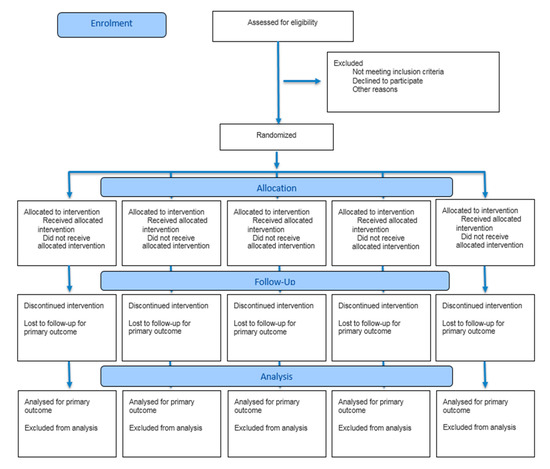 - Schulz, K.F.; Altman, D.G.; Moher, D.; The CONSORT Group. CONSORT 2010 Statement: Updated guidelines for reporting parallel group randomised trials. BMC Med. 2010, 8, 18. [Google Scholar] [CrossRef]