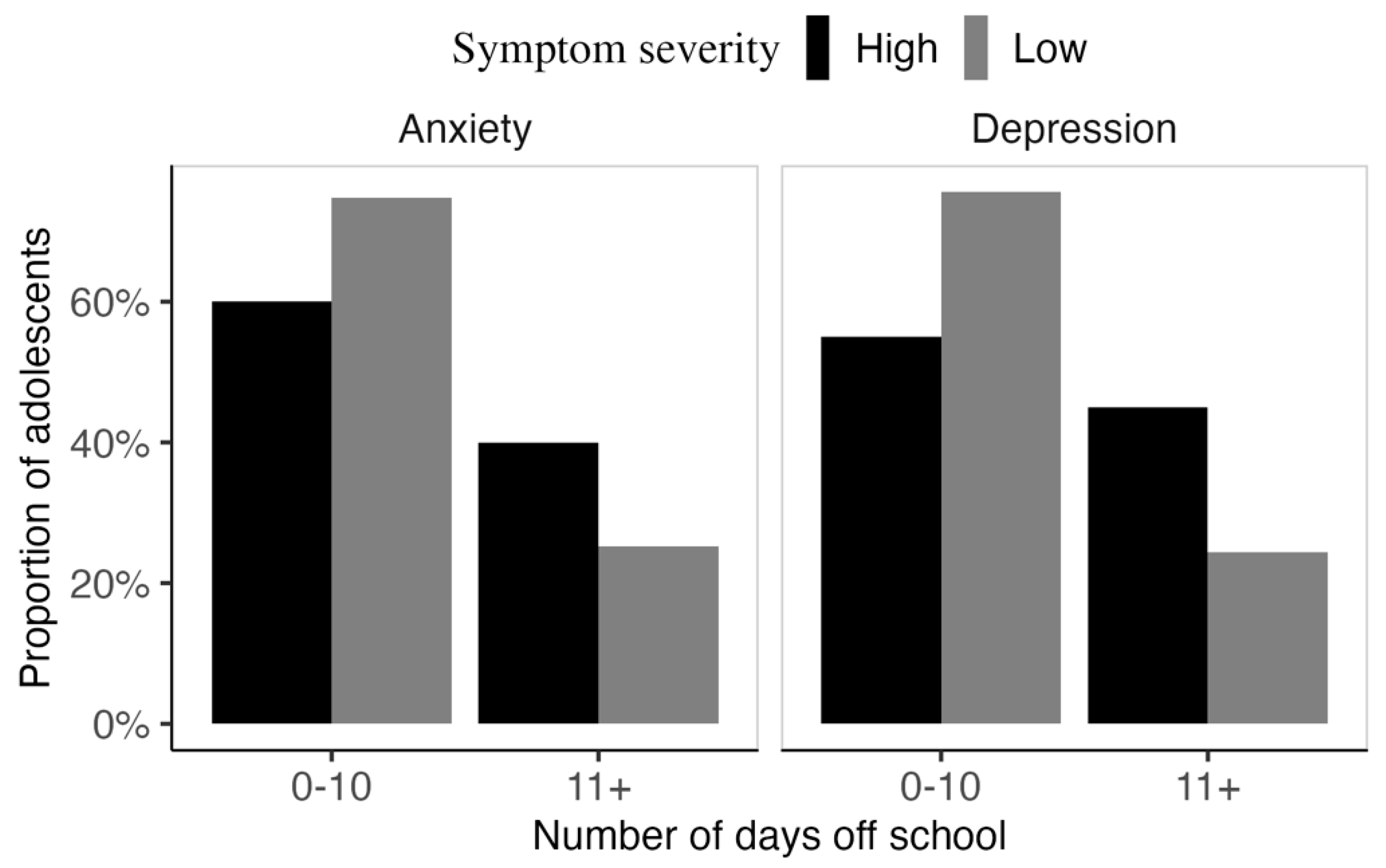 - School days off: To assess whether there was any association between the reported anxiety and depression symptoms and absenteeism, adolescents were asked to estimate the number of days they did not attend school over the past 12 months because of sickness.