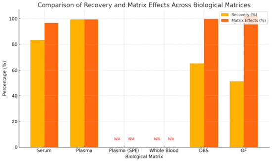 This statistical approach aimed to identify whether variability in matrix effects influenced recovery or analytical precision and to determine the internal consistency of UHPLC-based performance metrics across different biological matrices.