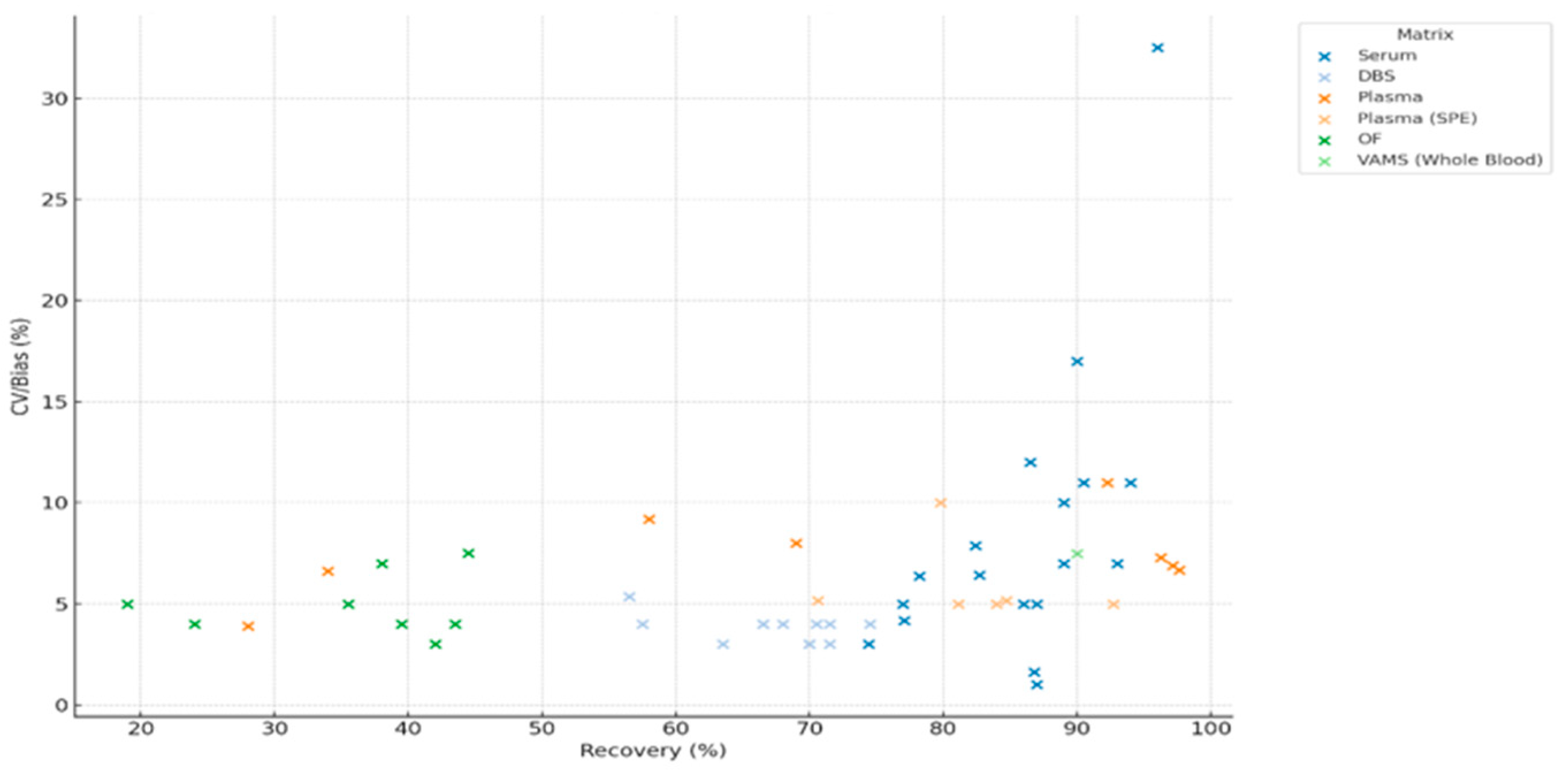 4.1. Biological Matrices and Analytical Variability: A Multidimensional Challenge