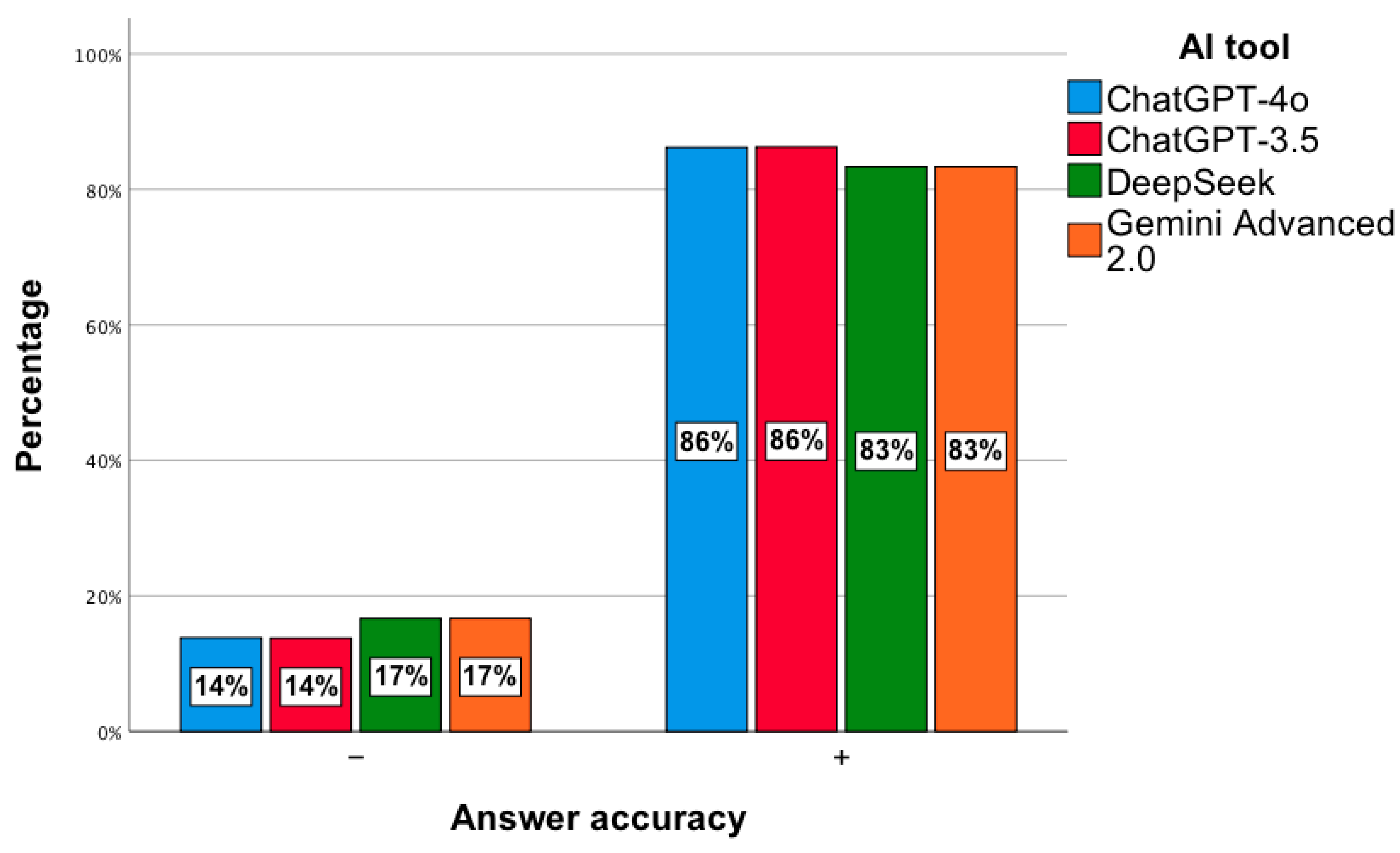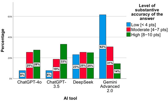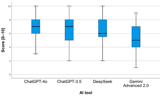 - For the third analyzed question, the Gemini Advanced 2.0 tool obtained a lower mean of given answers compared to ChatGPT-3.5 (p = 0.003) and DeepSeek (p < 0.001).