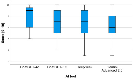 - For the fourth analyzed question, the ChatGPT-4o tool obtained a higher mean of given answers compared to each of all the other tools (p < 0.001).