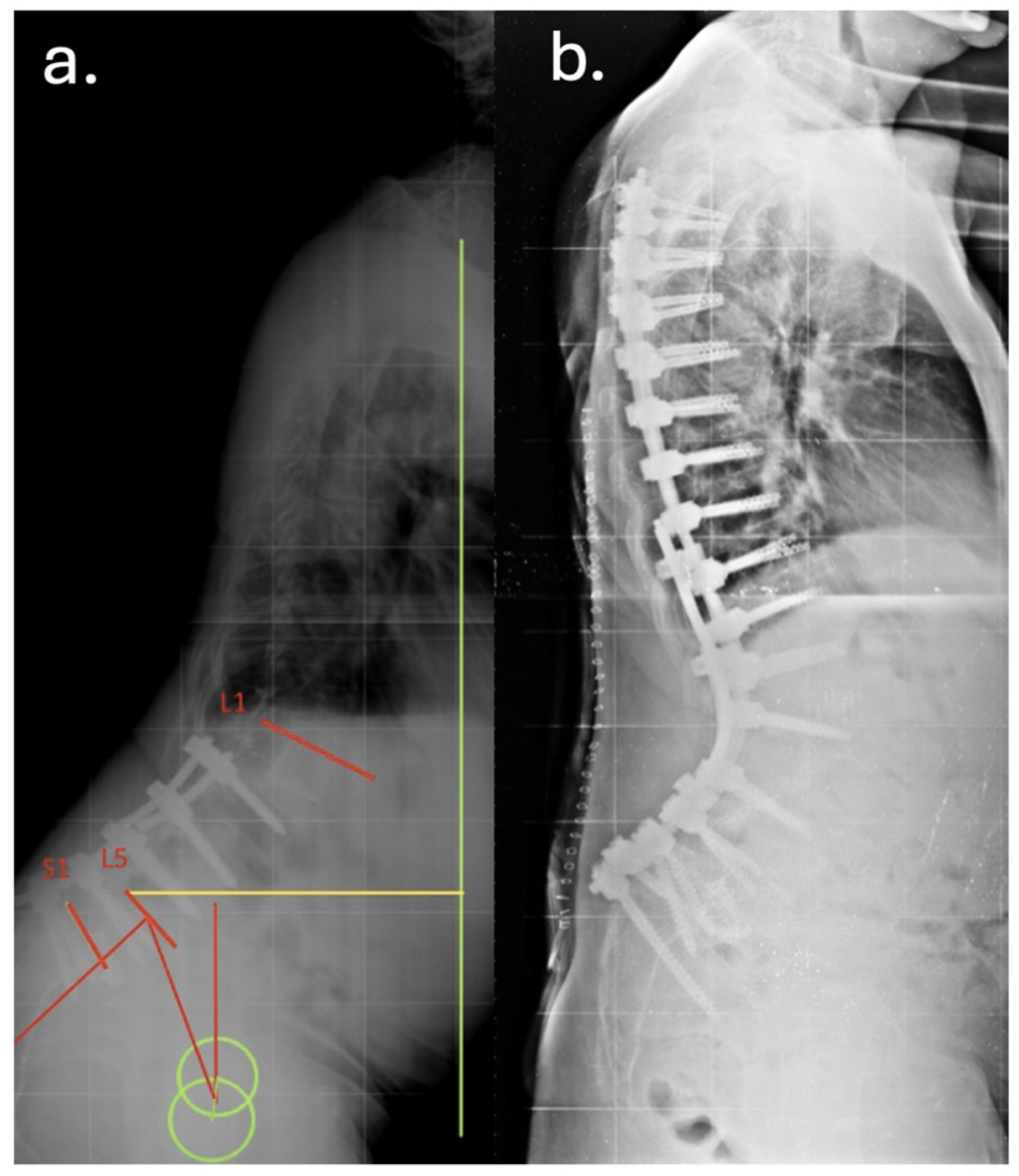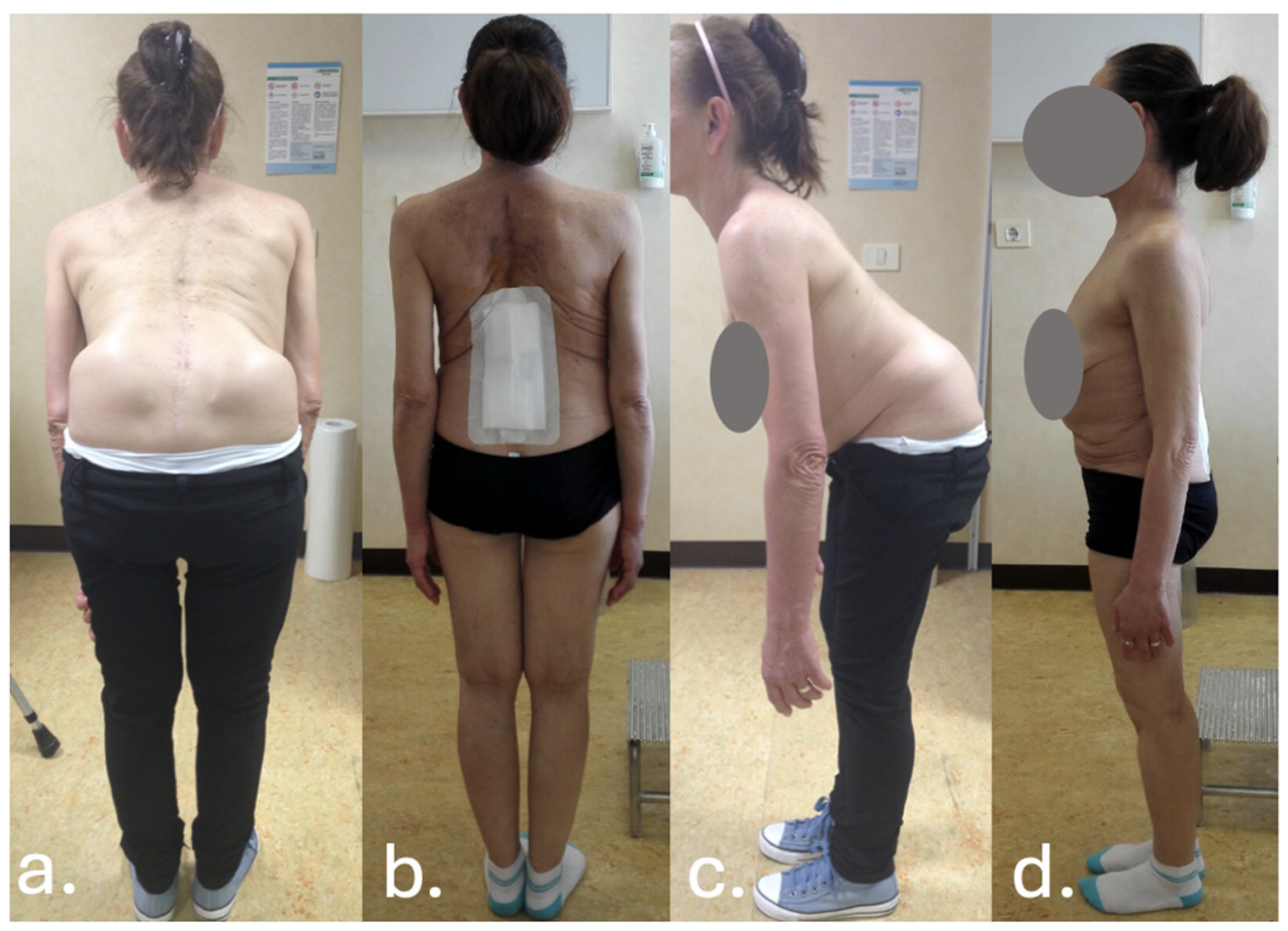 | Dec 2019 | Removal of left iliac and T4–T5 screws, new fixation at T2–T3 with 4-rod construct |