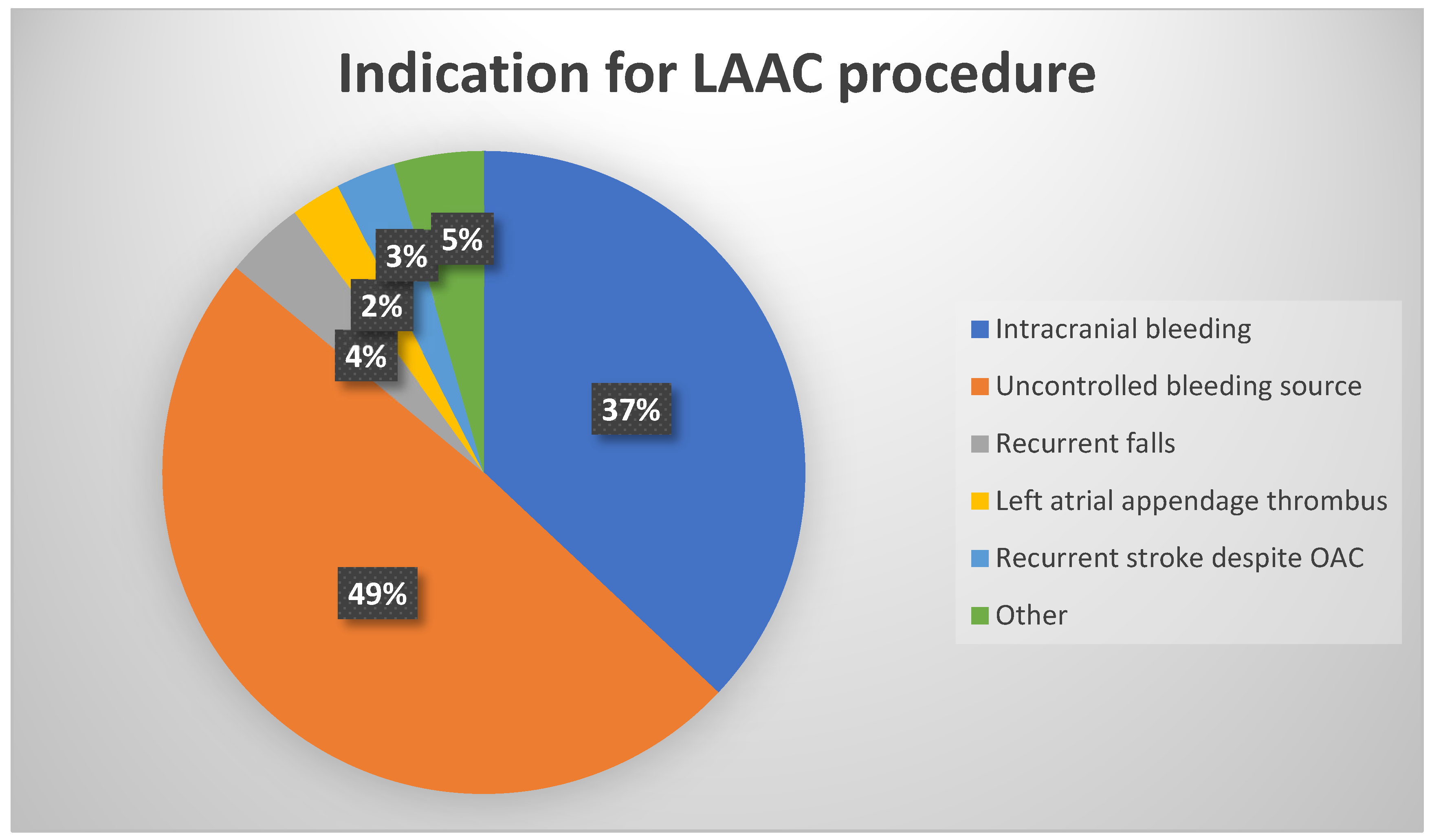 - Osmancik, P.; Herman, D.; Neuzil, P.; Hala, P.; Taborsky, M.; Kala, P.; Poloczek, M.; Stasek, J.; Haman, L.; Branny, M.; et al. Left Atrial Appendage Closure Versus Direct Oral Anticoagulants in High-Risk Patients With Atrial Fibrillation. J. Am. Coll. Cardiol. 2020, 75, 3122–3135. [Google Scholar] [CrossRef]