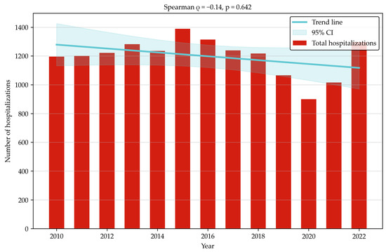 Total hospitalizations with K80–K83 diagnoses (2010–2022).