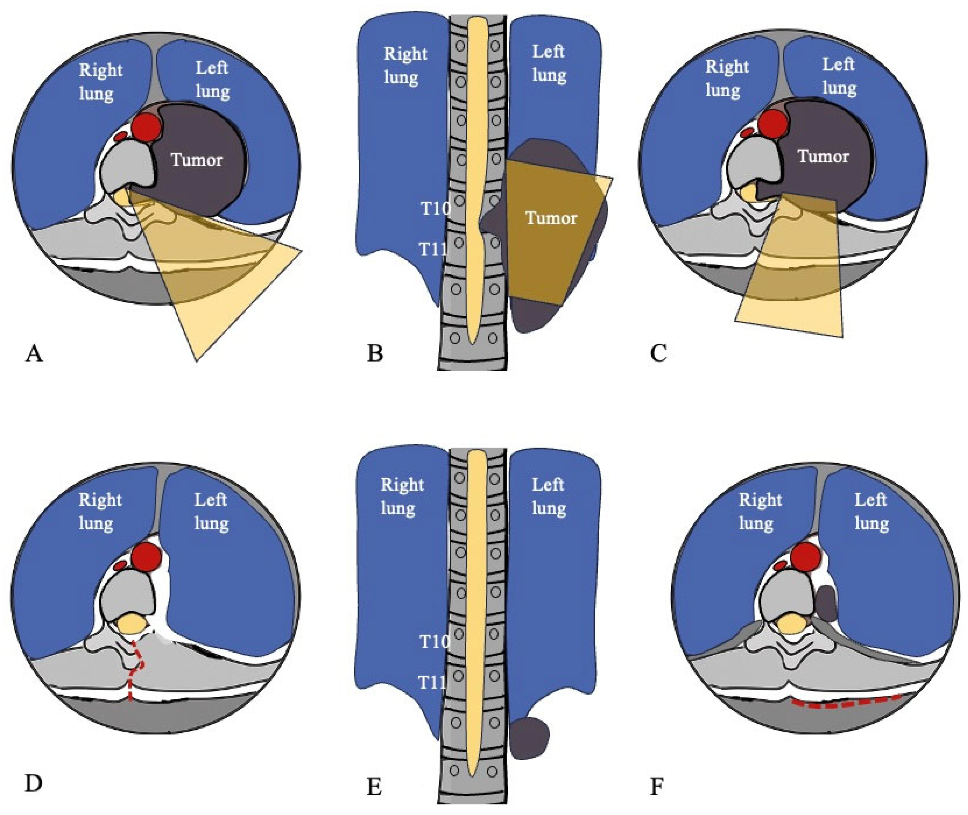 - Hara, R.; Matsuguma, H.; Suzuki, H.; Ishikawa, Y.; Nakahara, R.; Yamaguchi, T.; Hirabayashi, K. Desmoid Tumor Presenting as a Superior Sulcus Tumor: A Unique Bone Change in the Vertebral Body. Ann. Thorac. Surg. 2007, 84, 1752–1754. [Google Scholar] [CrossRef] [PubMed]