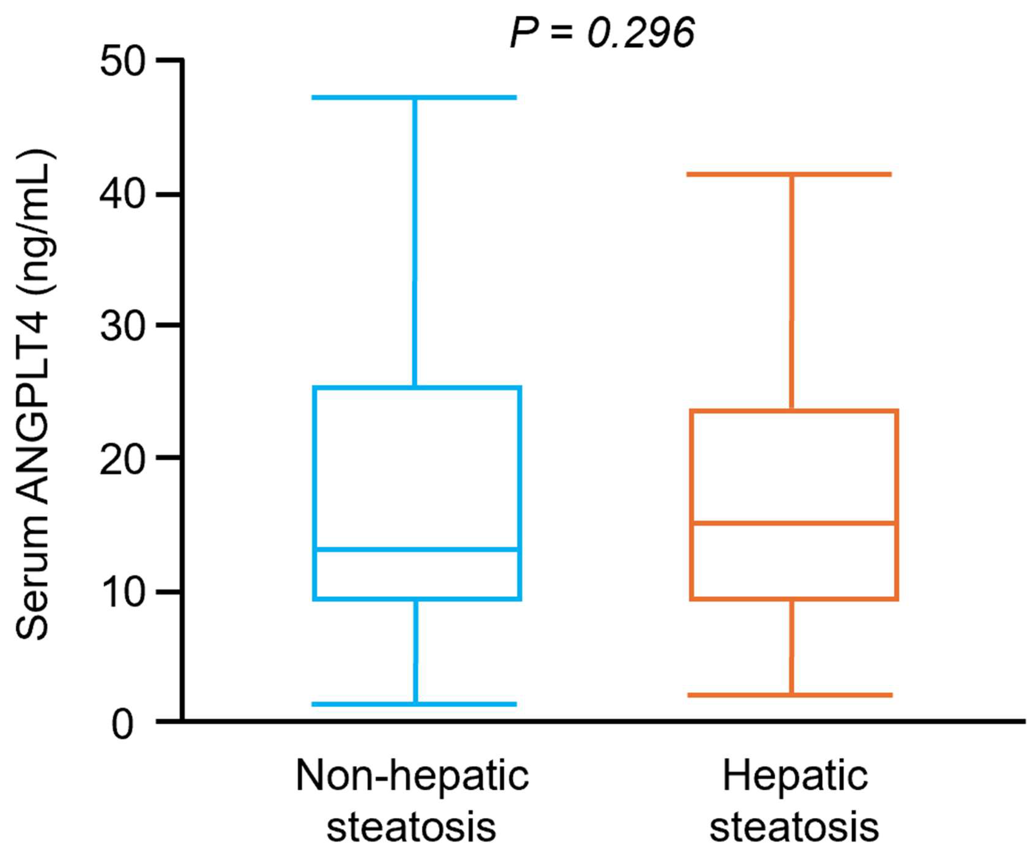 3.3. Prediabetes and Diabetes Were Independently Associated with Higher Serum ANGPTL4 Concentrations, Whereas Hepatic Steatosis Was Not