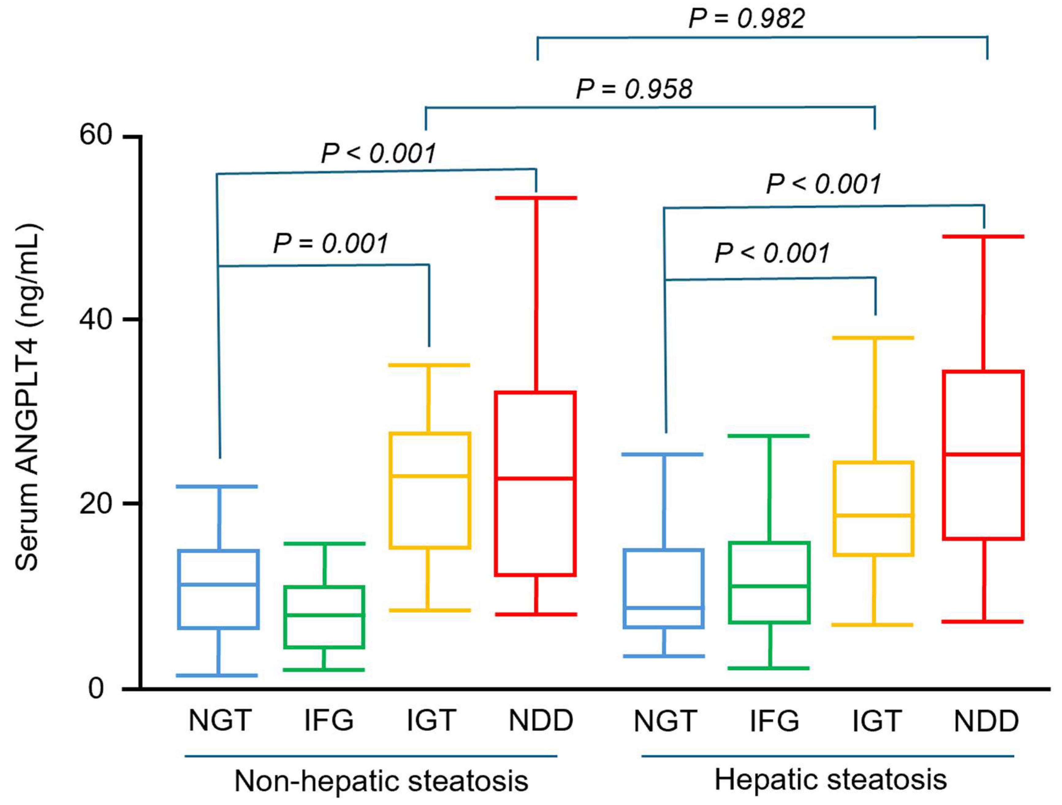Increased Serum Angiopoietin-like Peptide 4 in Impaired Glucose Tolerance and Diabetes Subjects with or Without Hepatic Steatosis