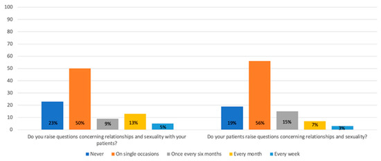 A majority (64%) of respondents considered healthcare professionals to be essential in addressing sexuality and related concerns as a natural part of care. Despite this, 84% of participants had never initiated discussions on these topics themselves, attributing this to factors such as embarrassment, time constraints during outpatient visits, or limited overall interaction with healthcare providers. In addition, many sought access to a psychologist or social worker, ideally with involvement from their partner.