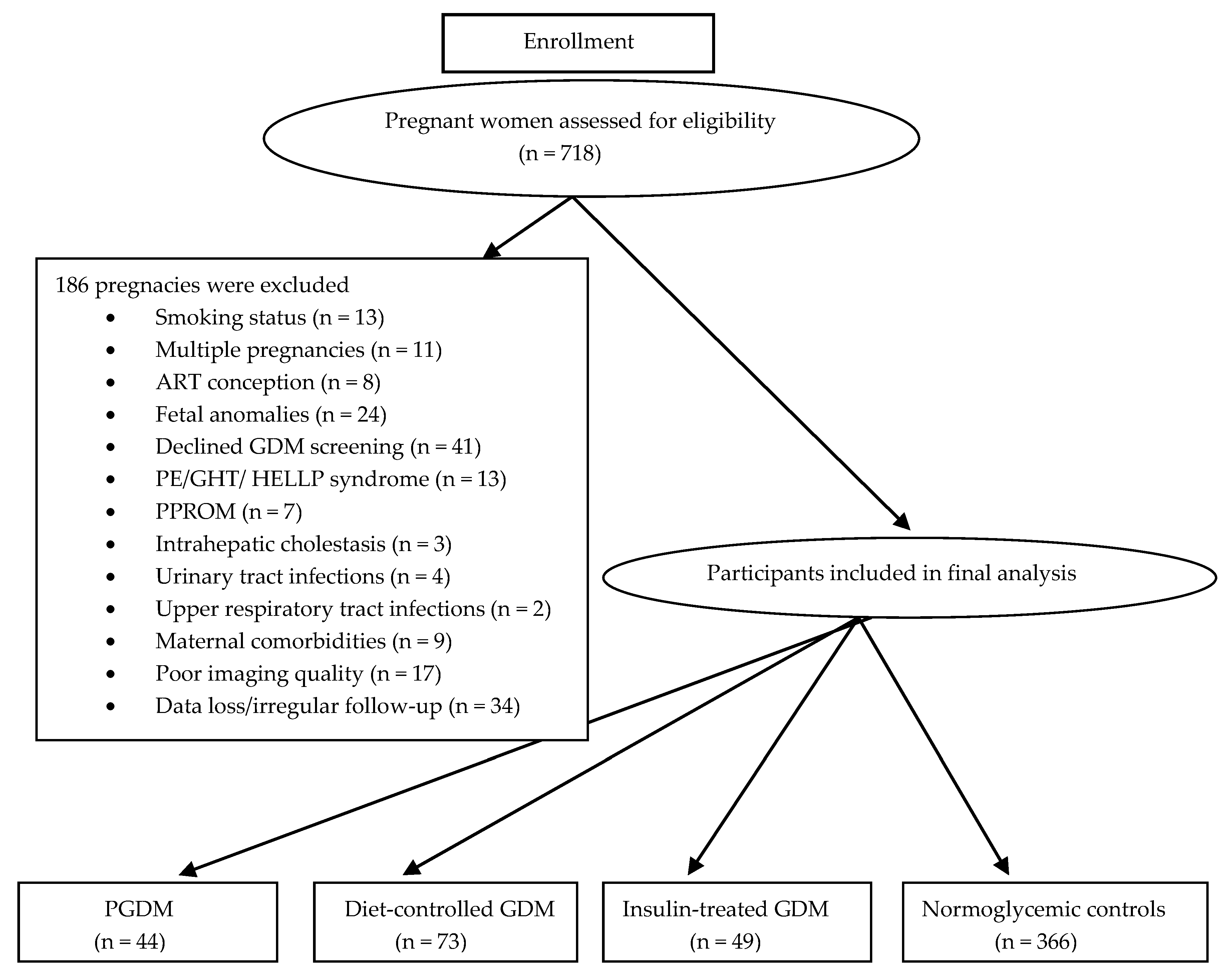 - Dörnemann, R.; Koch, R.; Möllmann, U.; Falkenberg, M.K.; Möllers, M.; Klockenbusch, W.; Schmitz, R. Fetal thymus size in pregnant women with diabetic diseases. J. Perinat. Med. 2017, 45, 595–601. [Google Scholar] [CrossRef] [PubMed]