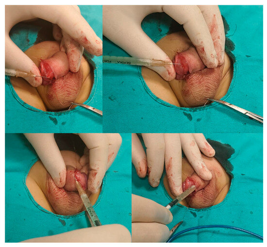Although circumcision is one of the most commonly performed surgical procedures and has a low complication rate, it is not entirely risk-free. Even minor issues such as penile edema can be enough to cause significant concern and panic for the patient’s parents. Circumcision complications can be divided into minor and major complications. Minor complications that may arise shortly after circumcision include bleeding, improper skin removal, and infection at the surgical site, all of which are relatively frequent. More serious early complications, although less common, can involve glandular amputation, urinary retention, urethral damage, and penile tissue death. Long-term complications, occurring later, encompass issues such as adhesions, formation of skin bridges, epidermal cysts, phimosis, curvature of the penis (chordee), entrapment of the penis, urethrocutaneous fistulas, and narrowing of the urethral opening (meatal stenosis) [4,5,6]. Among the complications associated with traditional circumcision, edema is the most prevalent, reported in 16% to 55% of cases, followed by bleeding at 2.9% [6,7,8]. Infection ranks as the third most frequent issue, occurring in 2.5% of cases [7,8].