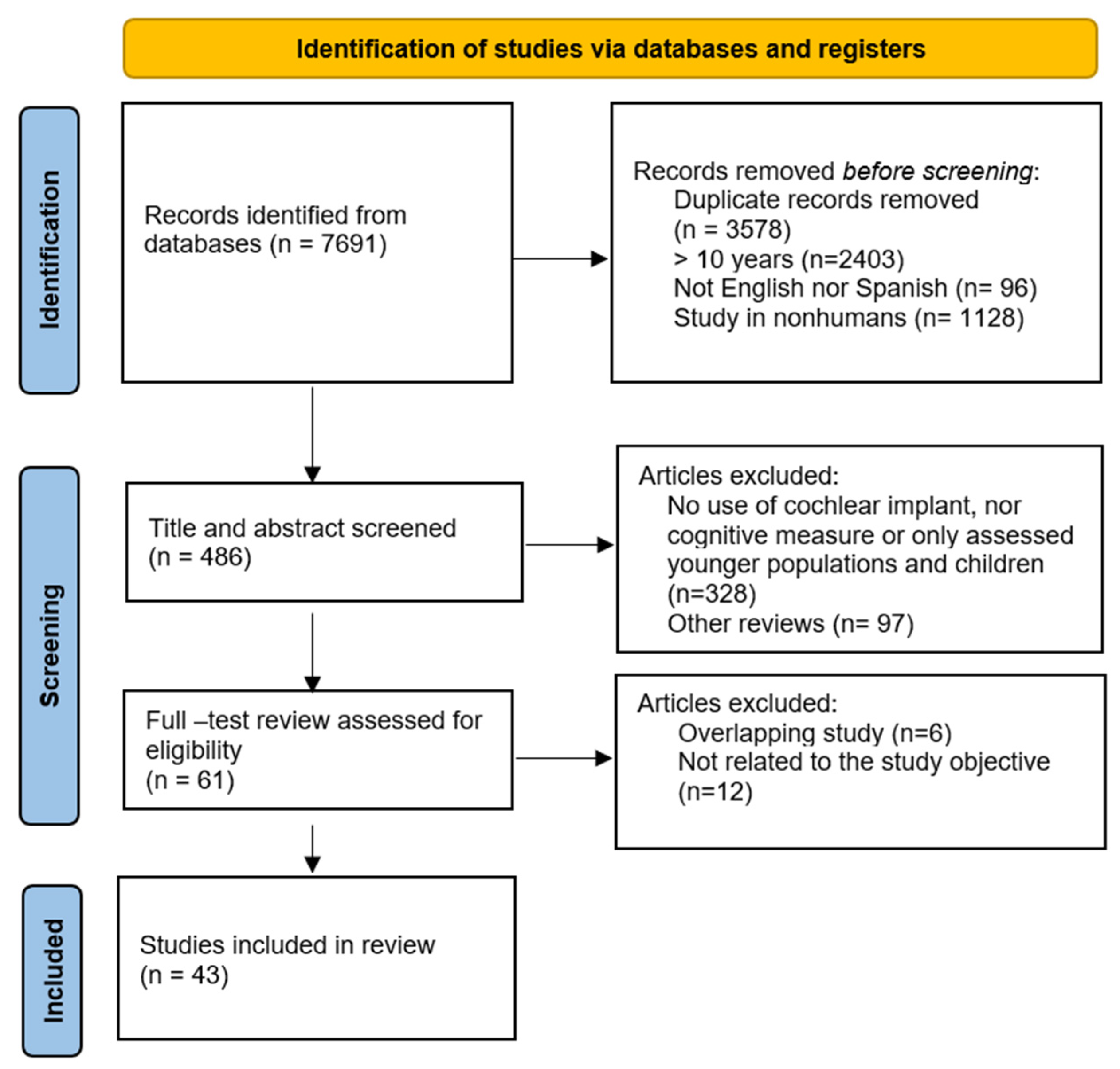Chicago/Turabian StyleVillarreal-Garza, Brenda, and María Amparo Callejón-Leblic. 2025. "Neuropsychological Assessments to Explore the Cognitive Impact of Cochlear Implants: A Scoping Review" Journal of Clinical Medicine 14, no. 21: 7628. https://doi.org/10.3390/jcm14217628