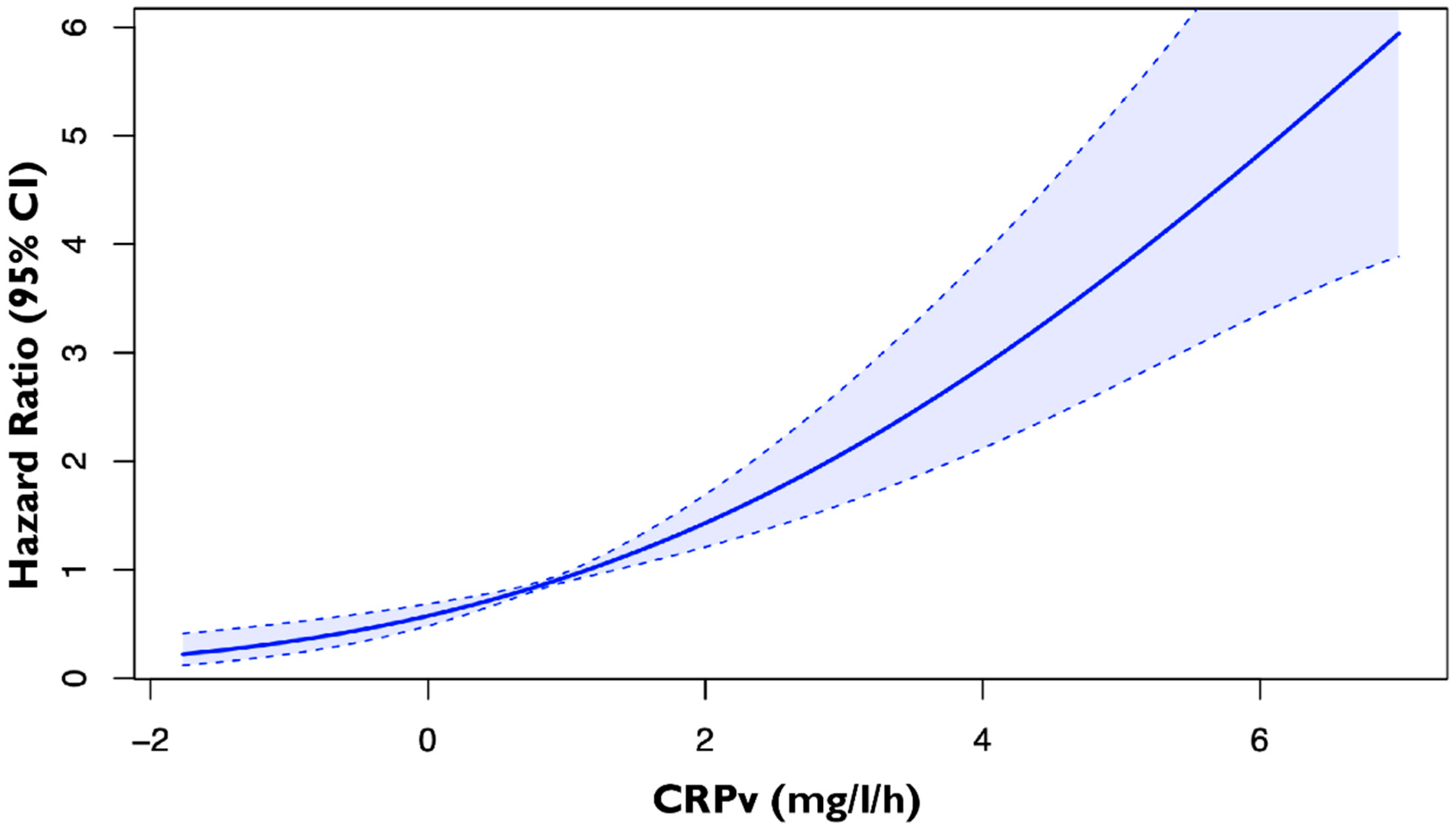 3.4. Incremental Prognostic Value of CRPv for the Primary Composite Endpoint