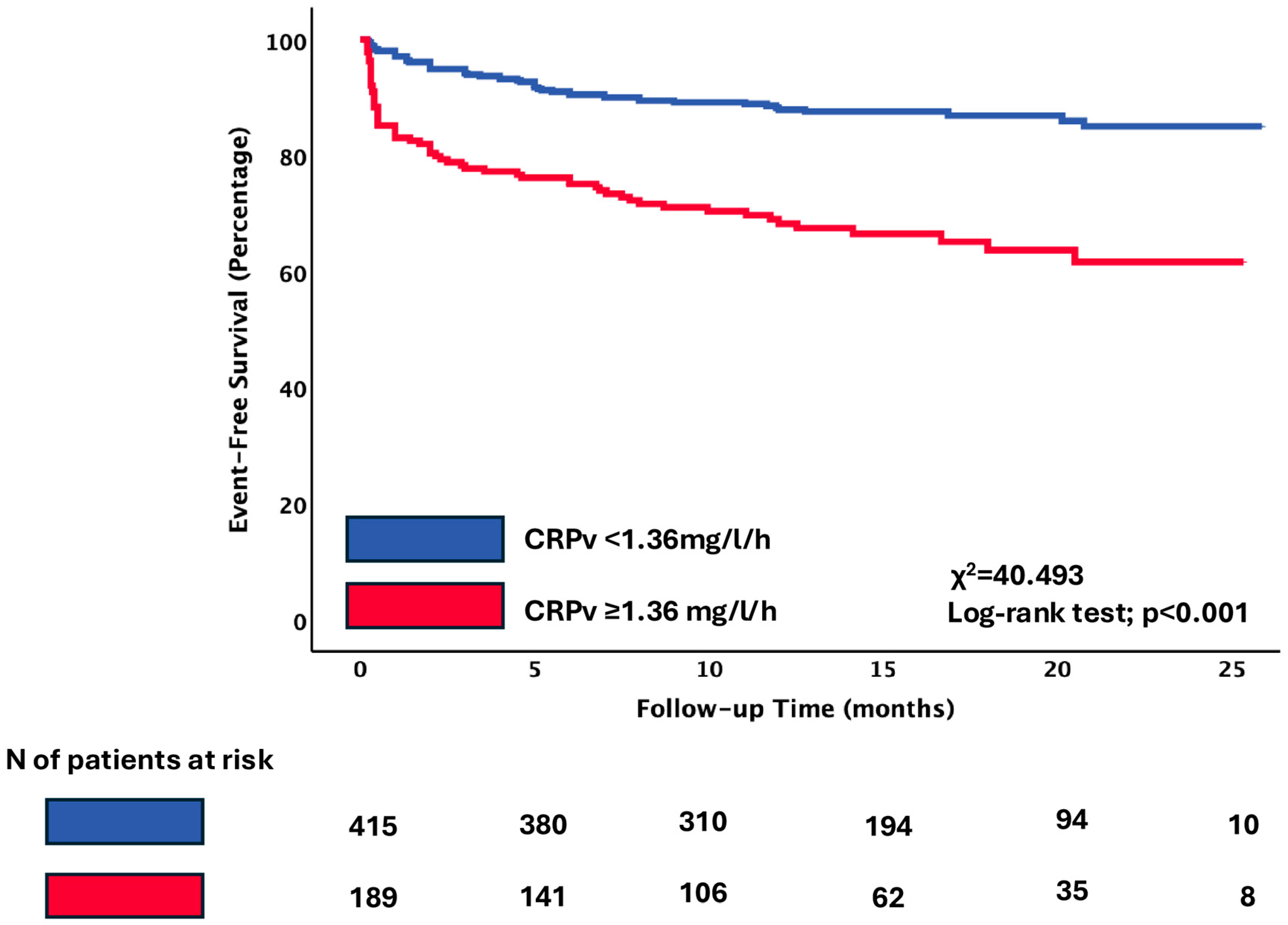 | Variable | All (n = 604) | CRPv < 1.36 mg/L/h (n = 415) | CRPv ≥ 1.36 mg/L/h (n = 189) | p-Value |