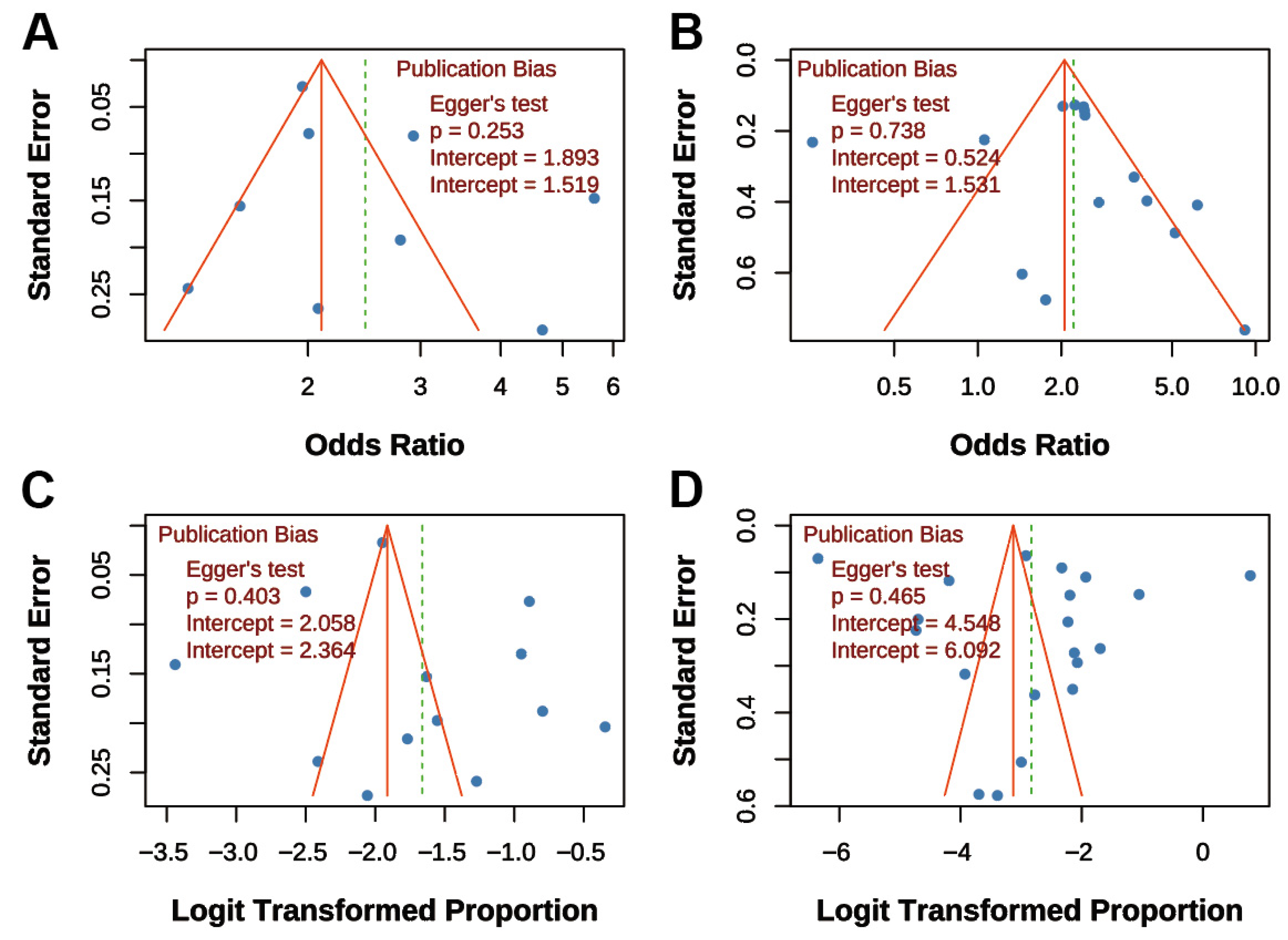 3.7. Publication Bias Assessment