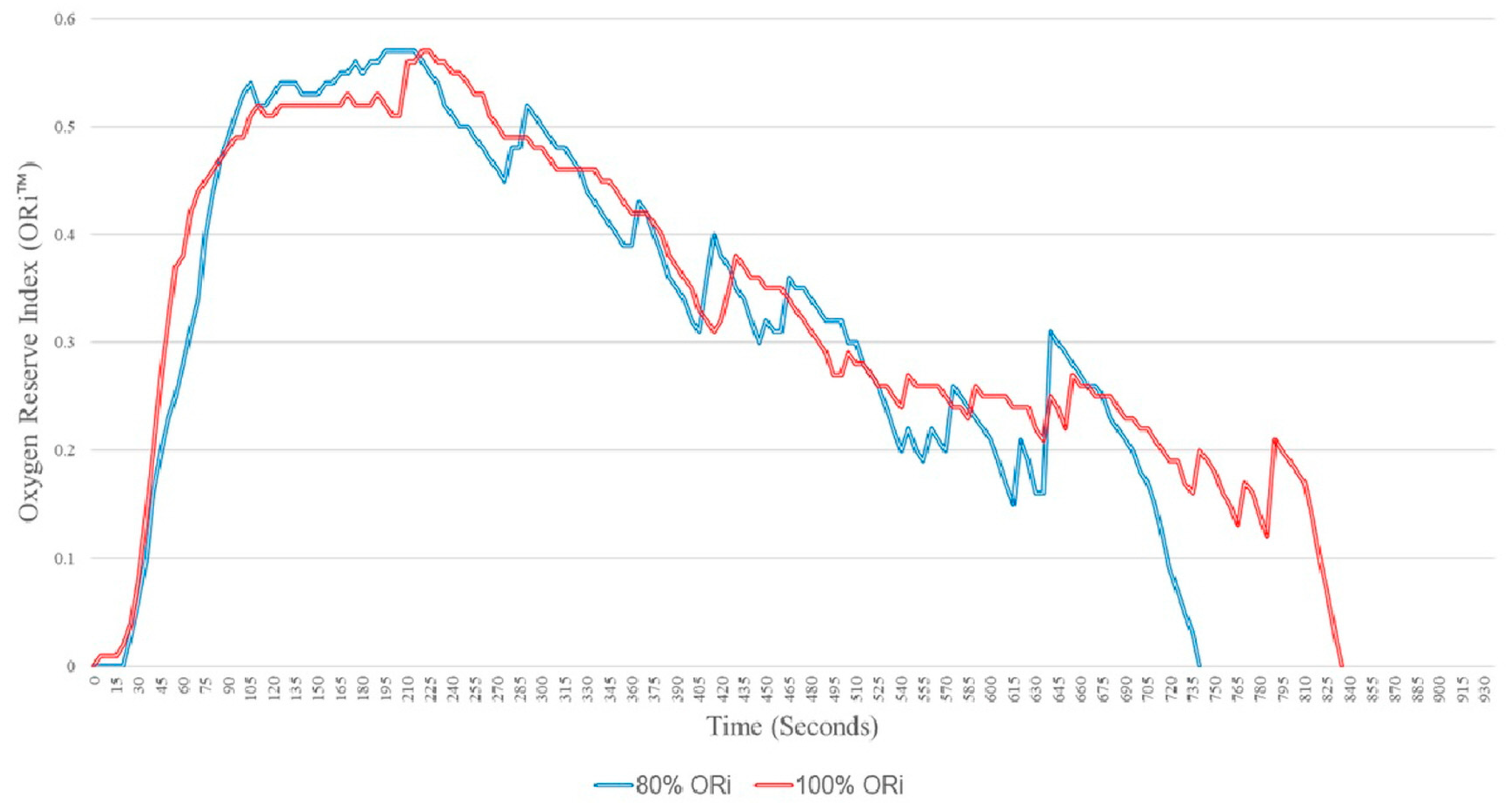 | Time from oxygen administration to first ORi™ > 0 | 49 ± 25 | 42 ± 18 | 0.430 a | 6.5 s | −10.3 to 23.4 |