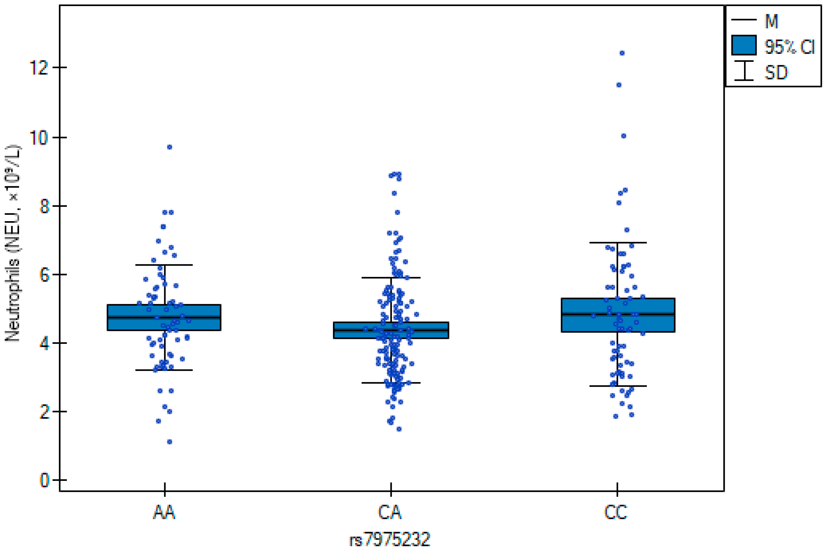 | Neutrophils (NEU, ×109/L) | 4.57 (1.69) | 1.13–12.44 |