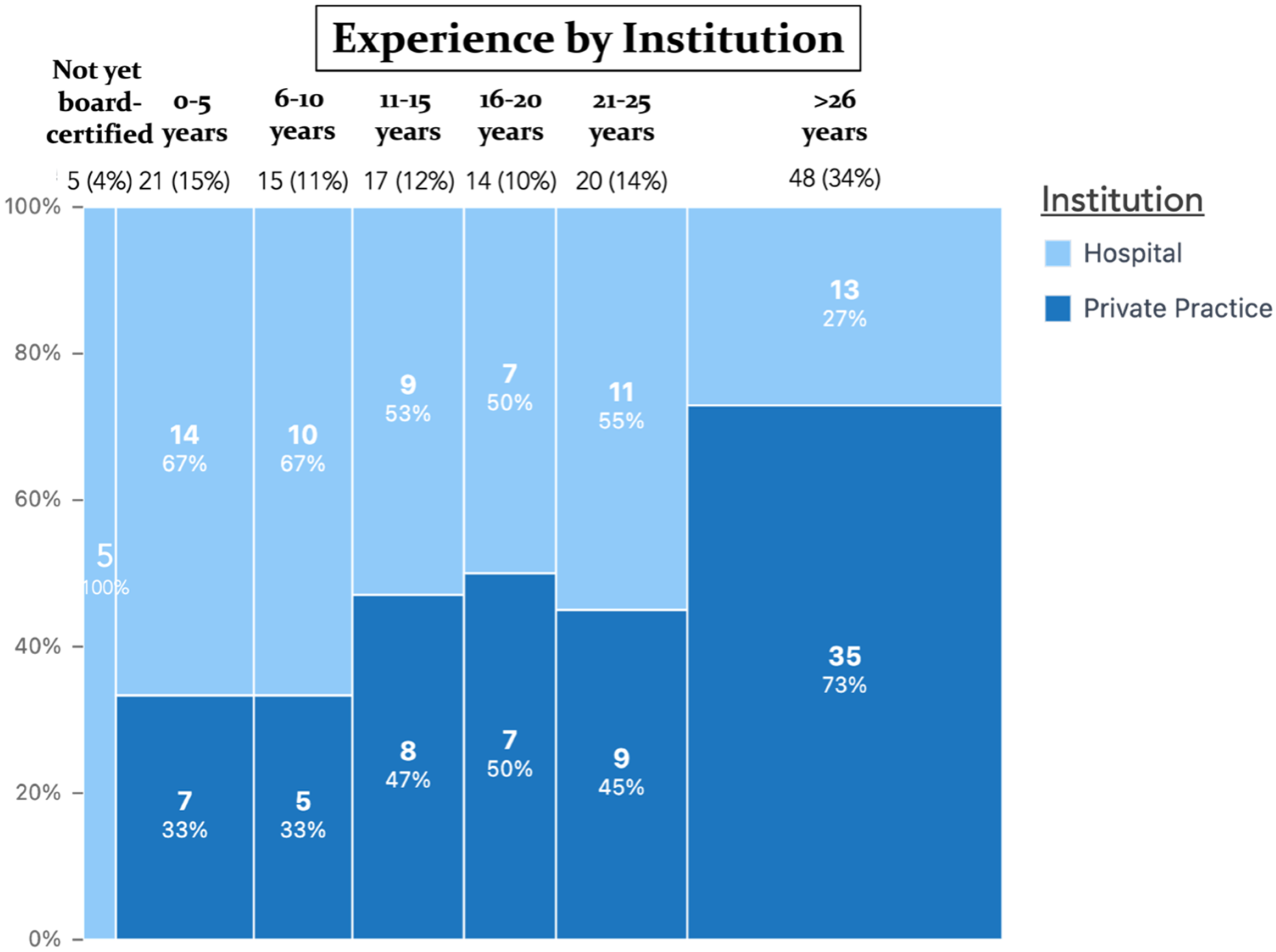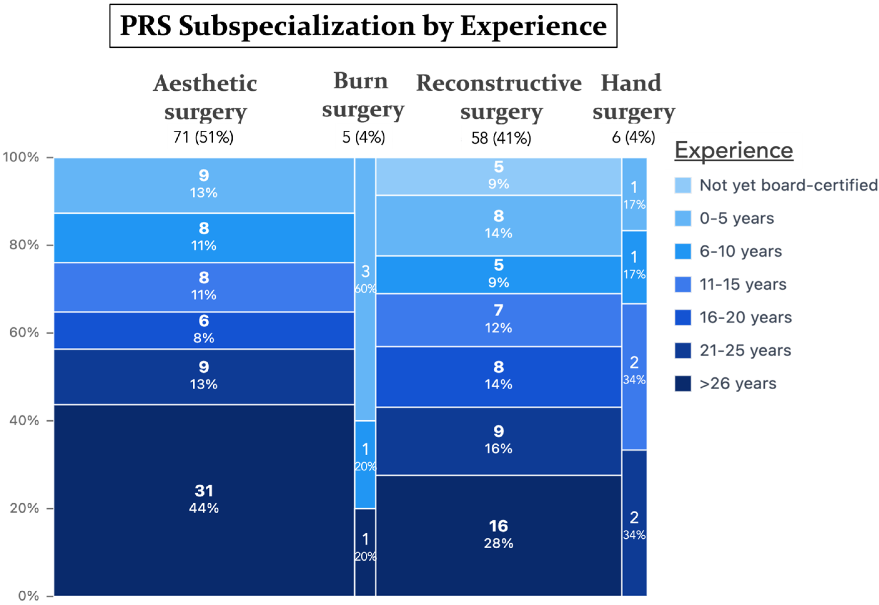 | Years of being a board-certified plastic surgeon | Not yet board certified | 5 | 3.6 |