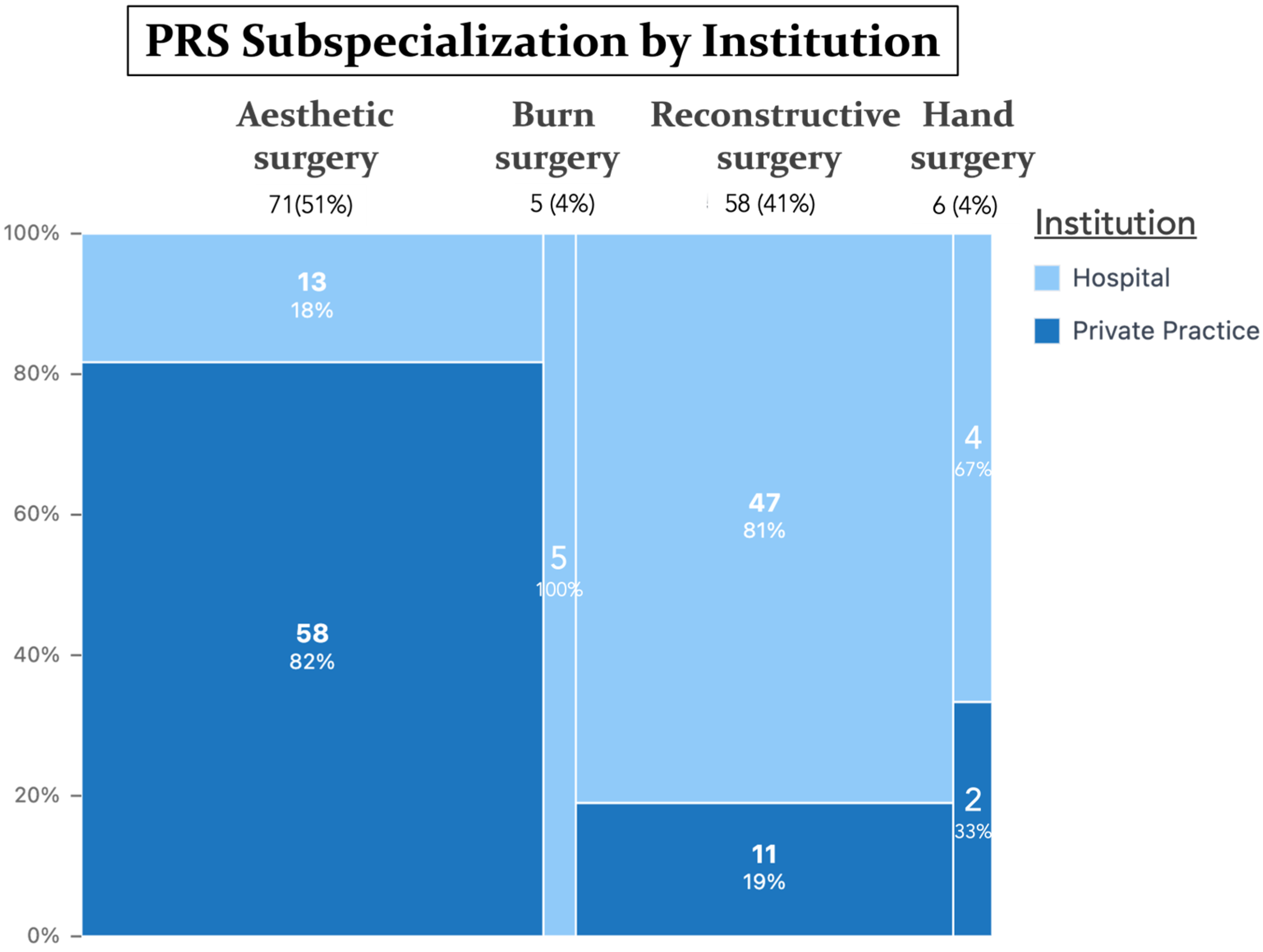 - Gutowski, K.S.B.; Chwa, E.S.B.; Weissman, J.P.B.; Garg, S.P.B.; Simmons, C.J.B.; Brandt, K.E.; Gosain, A.K. Practice Profile of Practicing Plastic Surgeons: A 20-Year Review of Plastic Surgery Statistics. Plast. Reconstr. Surg. Glob. Open 2023, 11, E5486. [Google Scholar] [CrossRef]