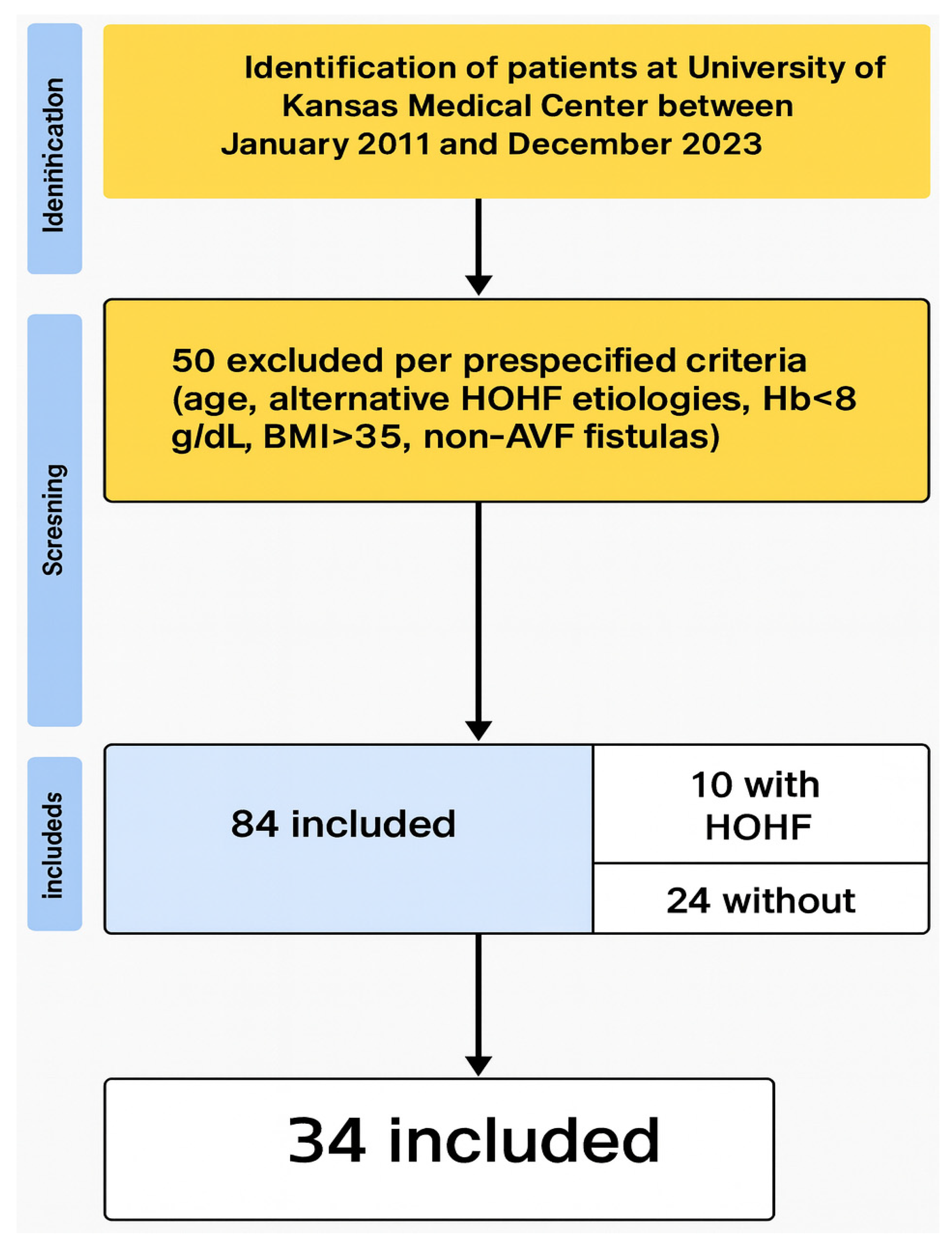 APA StyleTripathi, A., Hanten, B., Shafiq, M., Tiwari, A., Gautam, A., Bhyan, P., Dalia, T., & Gupta, B. (2025). Incidence and Outcomes of High-Output Heart Failure in Patients with Arteriovenous Fistula: A Single-Center Retrospective Cohort Study. Journal of Clinical Medicine, 14(21), 7689. https://doi.org/10.3390/jcm14217689
