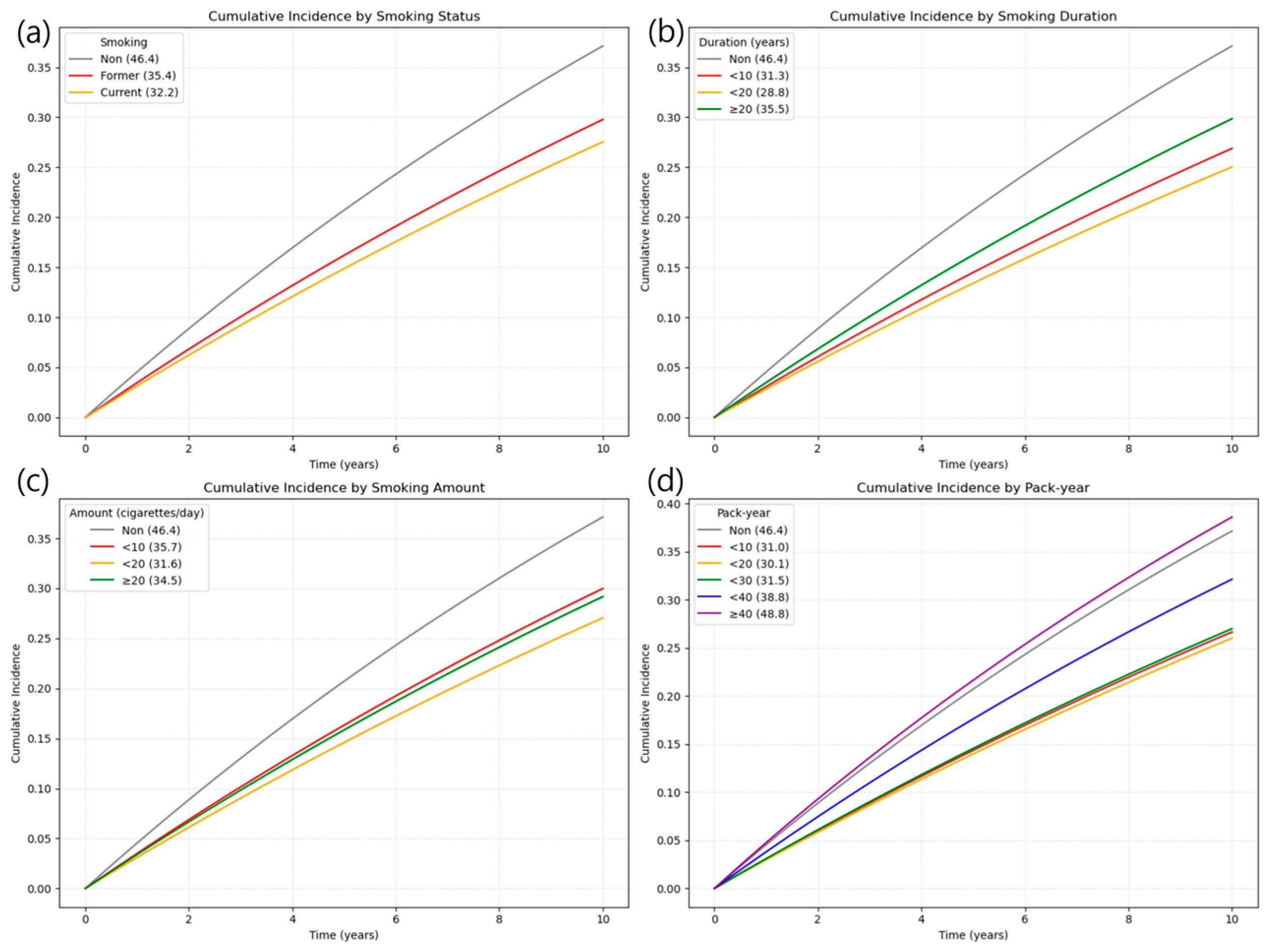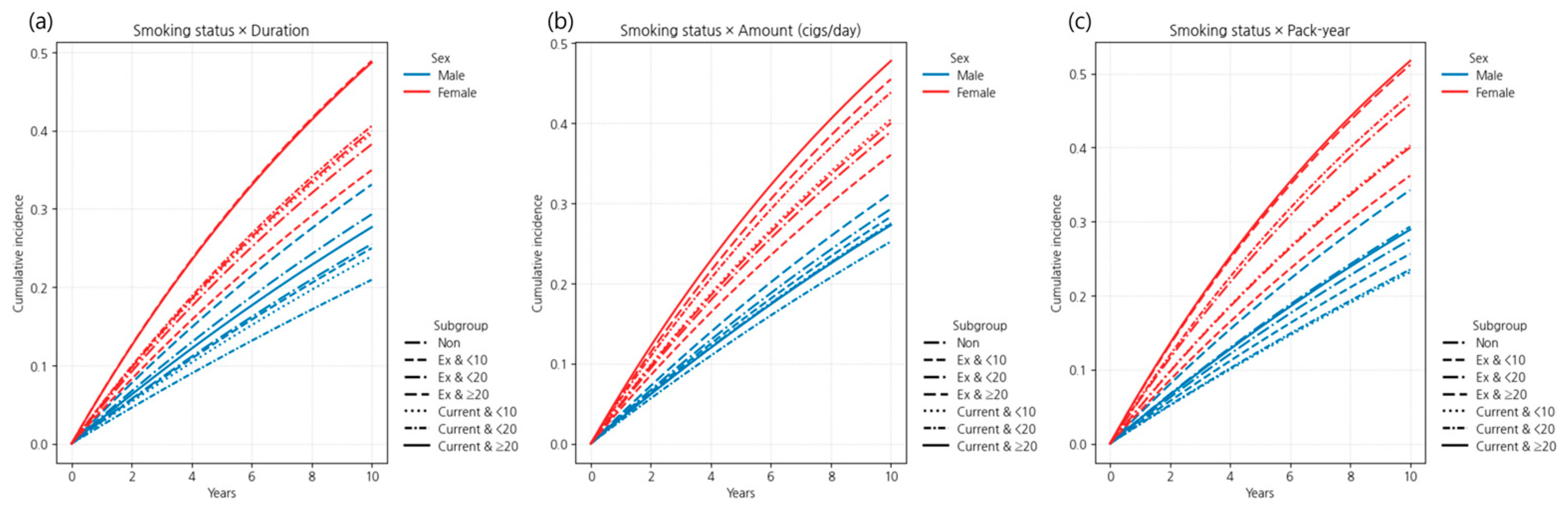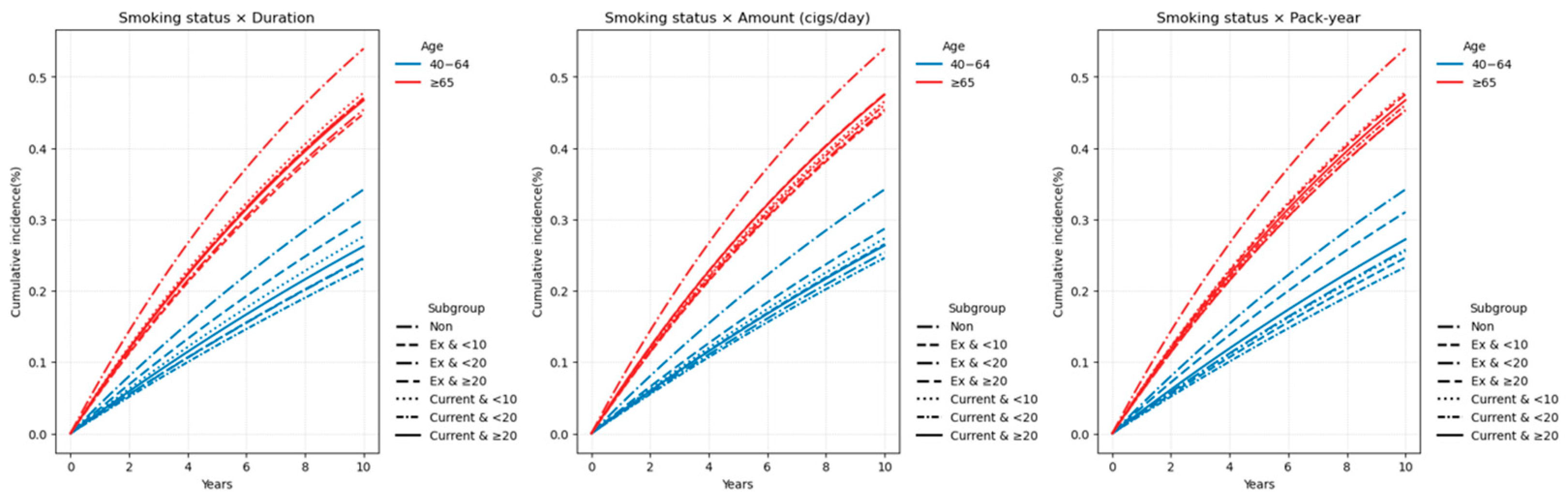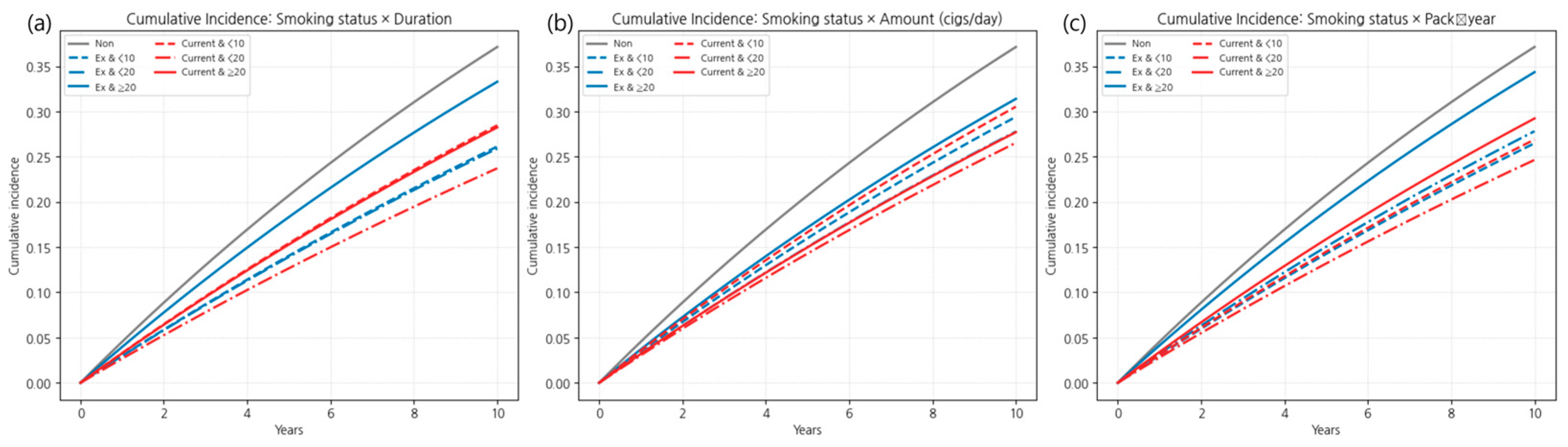 3.3. Combined Effect of Smoking Cessation and Cumulative Smoking Burden