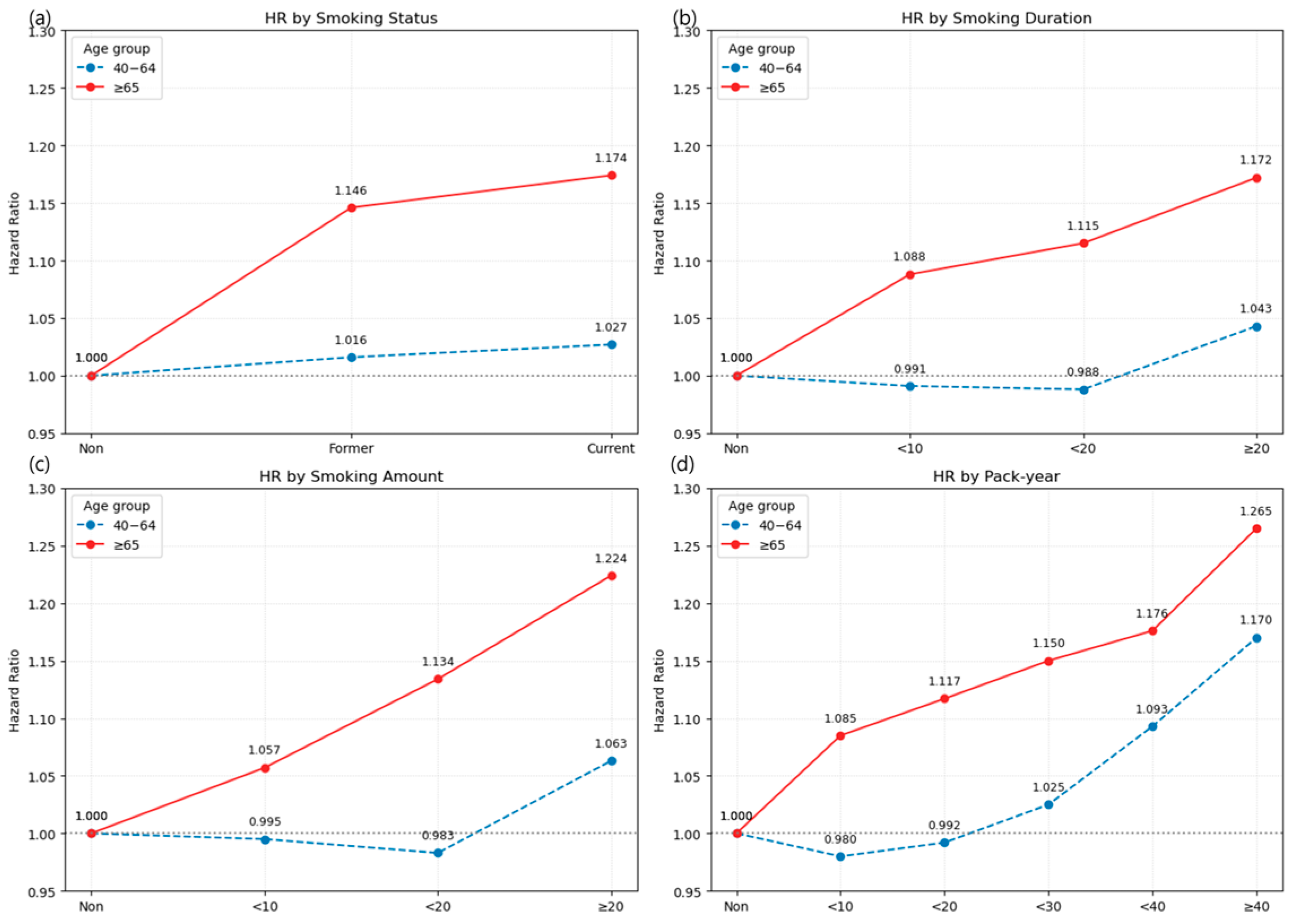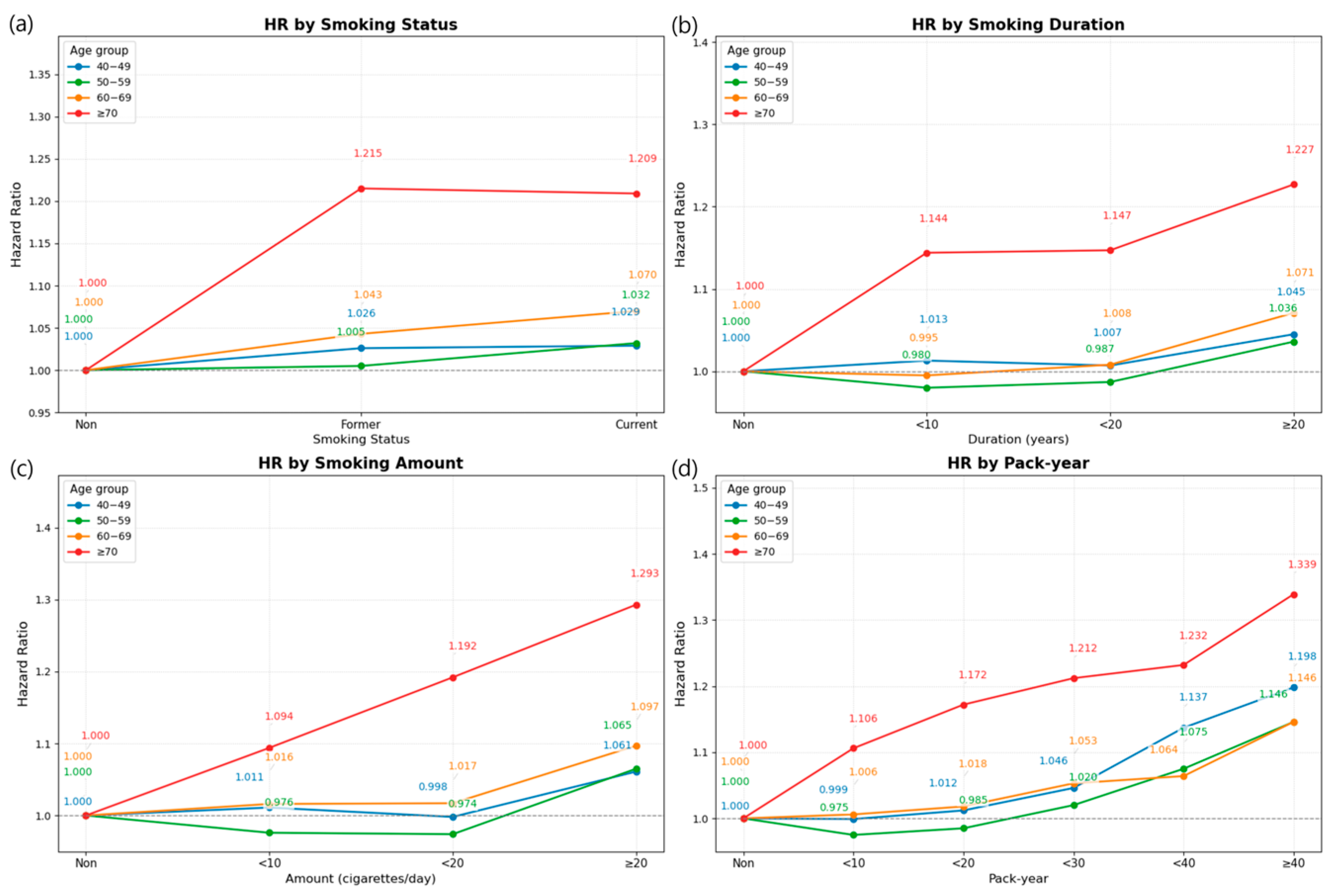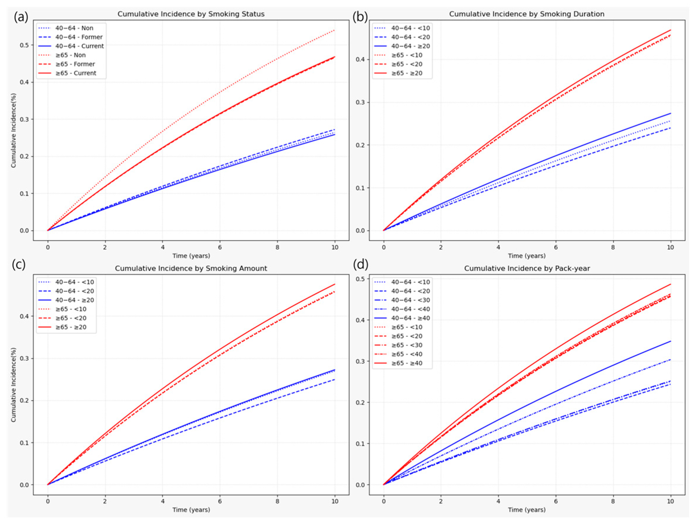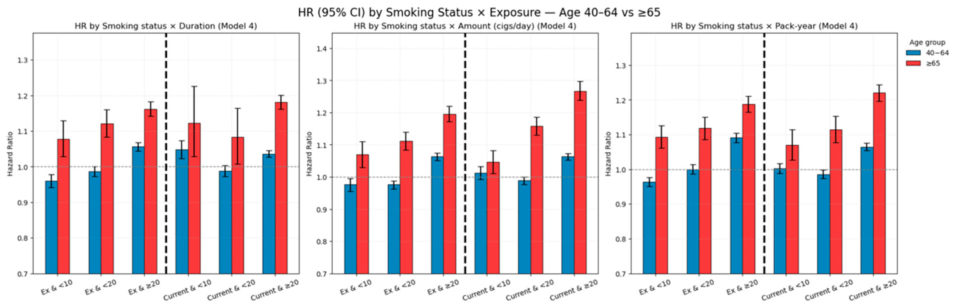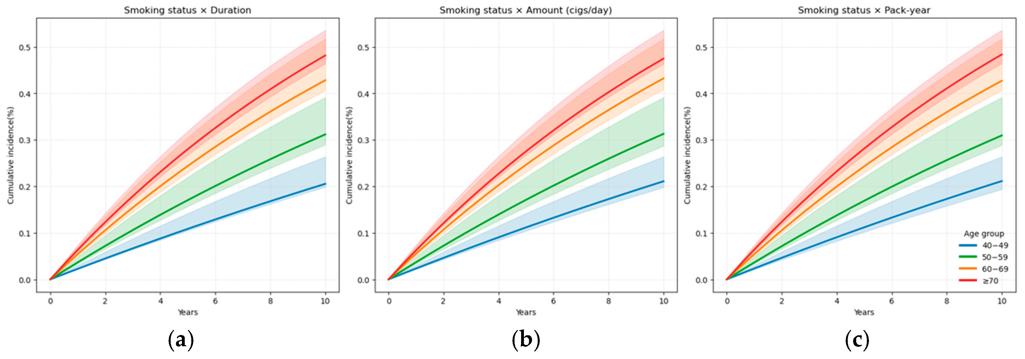 3.3.1. Age-Stratified Effects of Combined Smoking Burden and Cessation