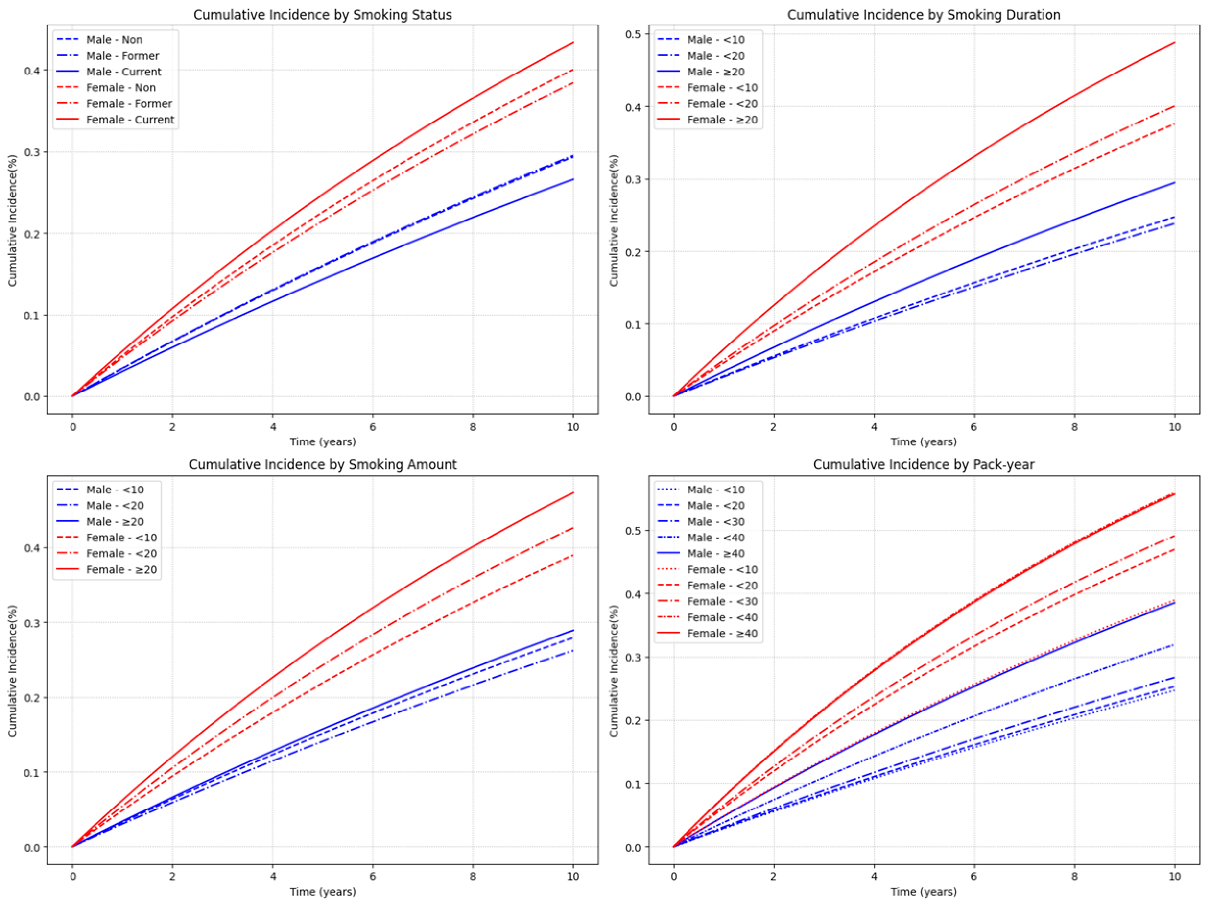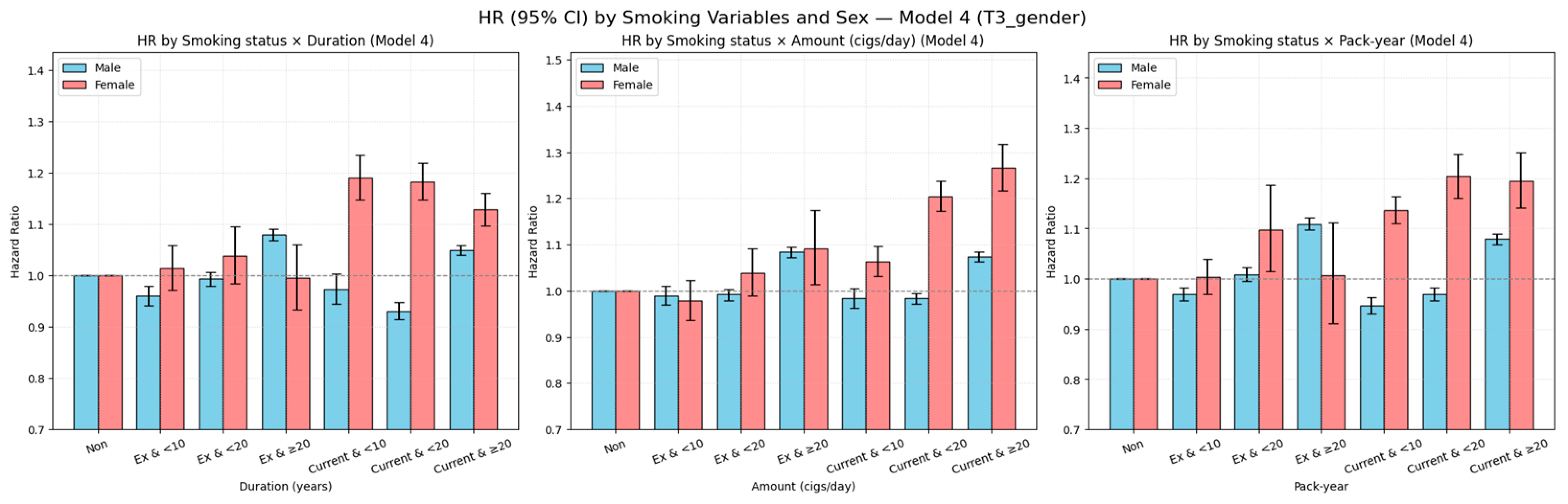 3.3.2. Sex-Stratified Effects of Combined Smoking Burden and Cessation