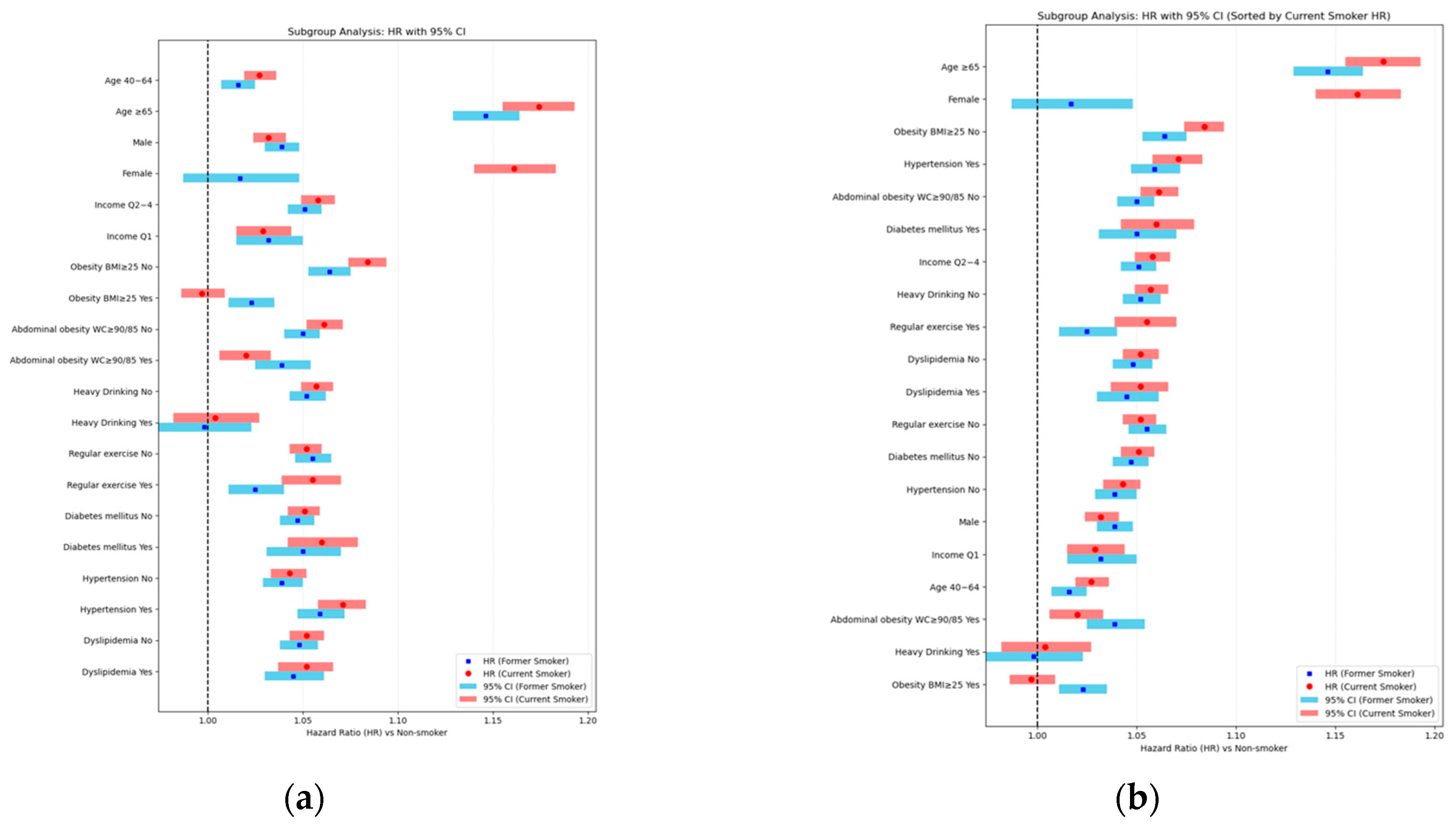 3.2.2. Heterogeneity of Smoking Risk by Sex