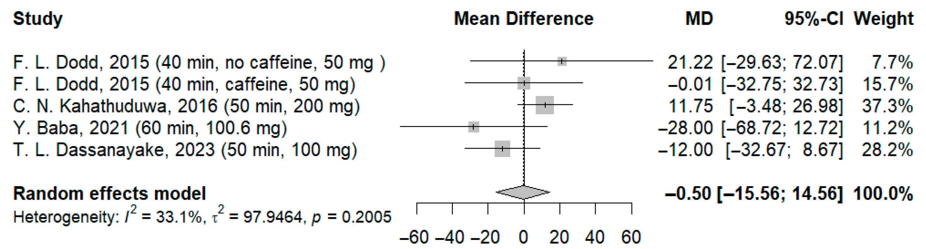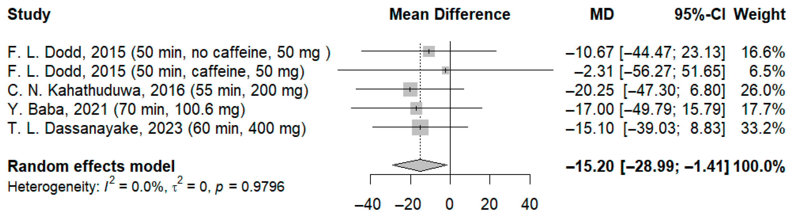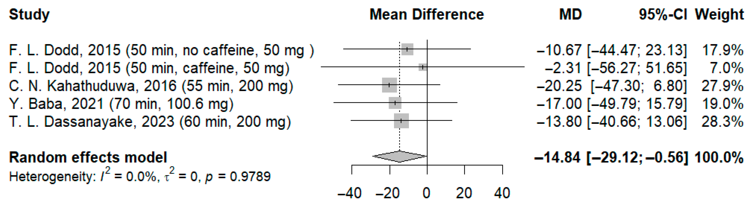 3.3.1. Effects of l-Theanine on Reaction Time to Simple Stimulus