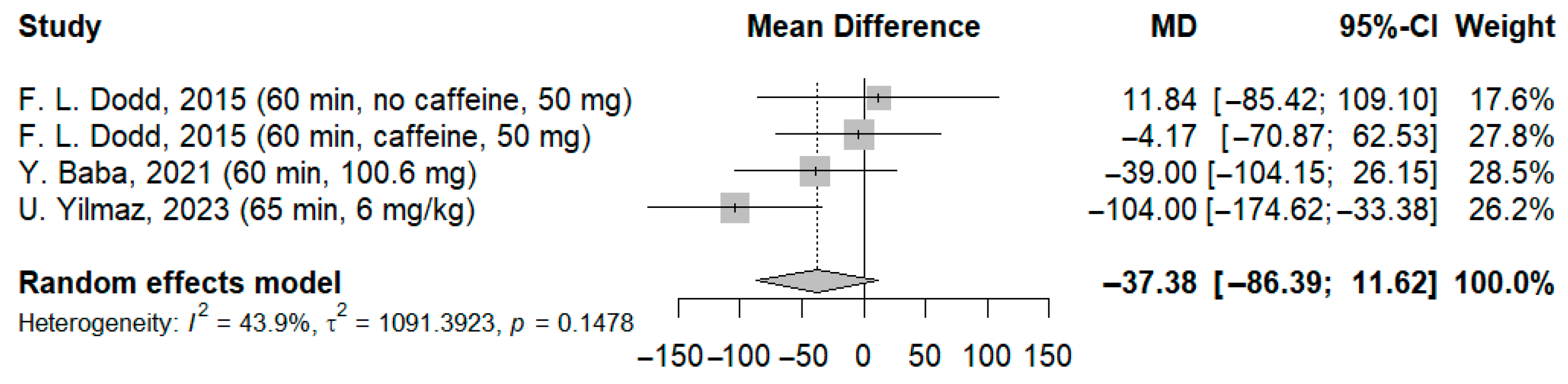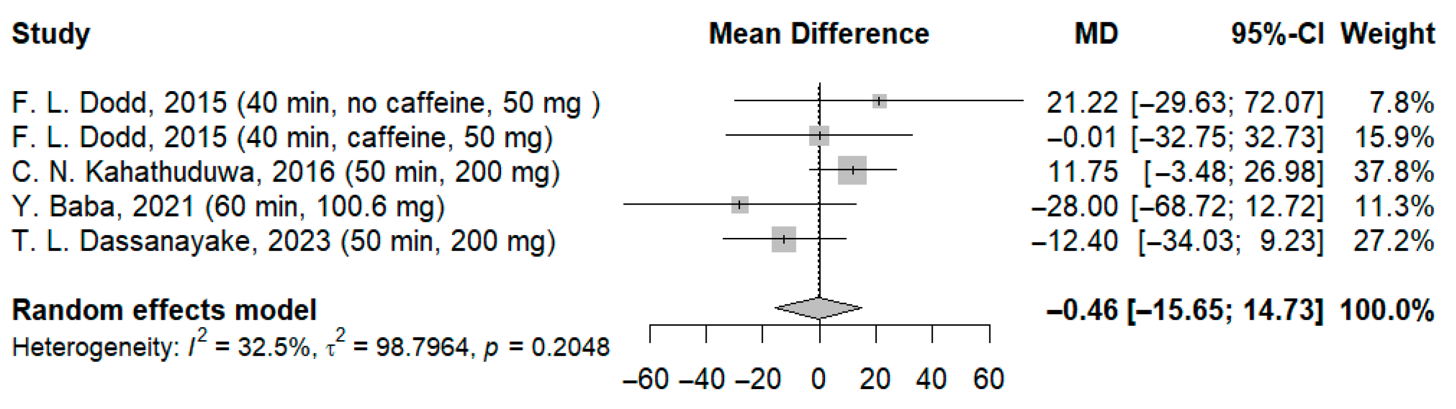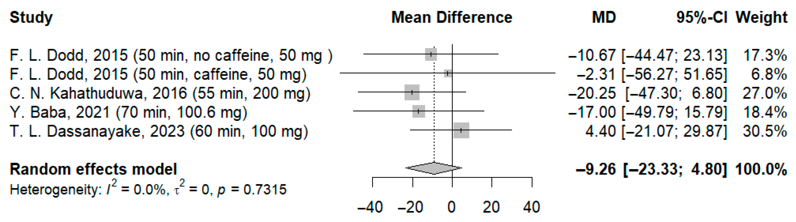 3.3.1. Effects of l-Theanine on Reaction Time to Simple Stimulus
