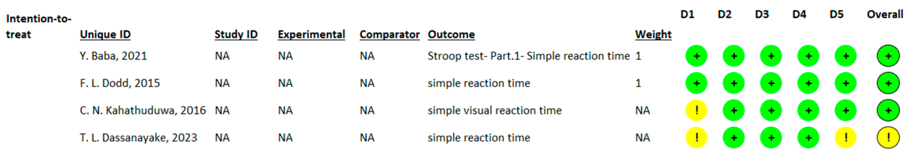 | First Author, Year of Publication | Country | Study Type | Subgroup | Group | Dose | Intervention Form | Sample Size (n) | Outcome | Results (Milisecundum) | Adverse Events | Reference | |