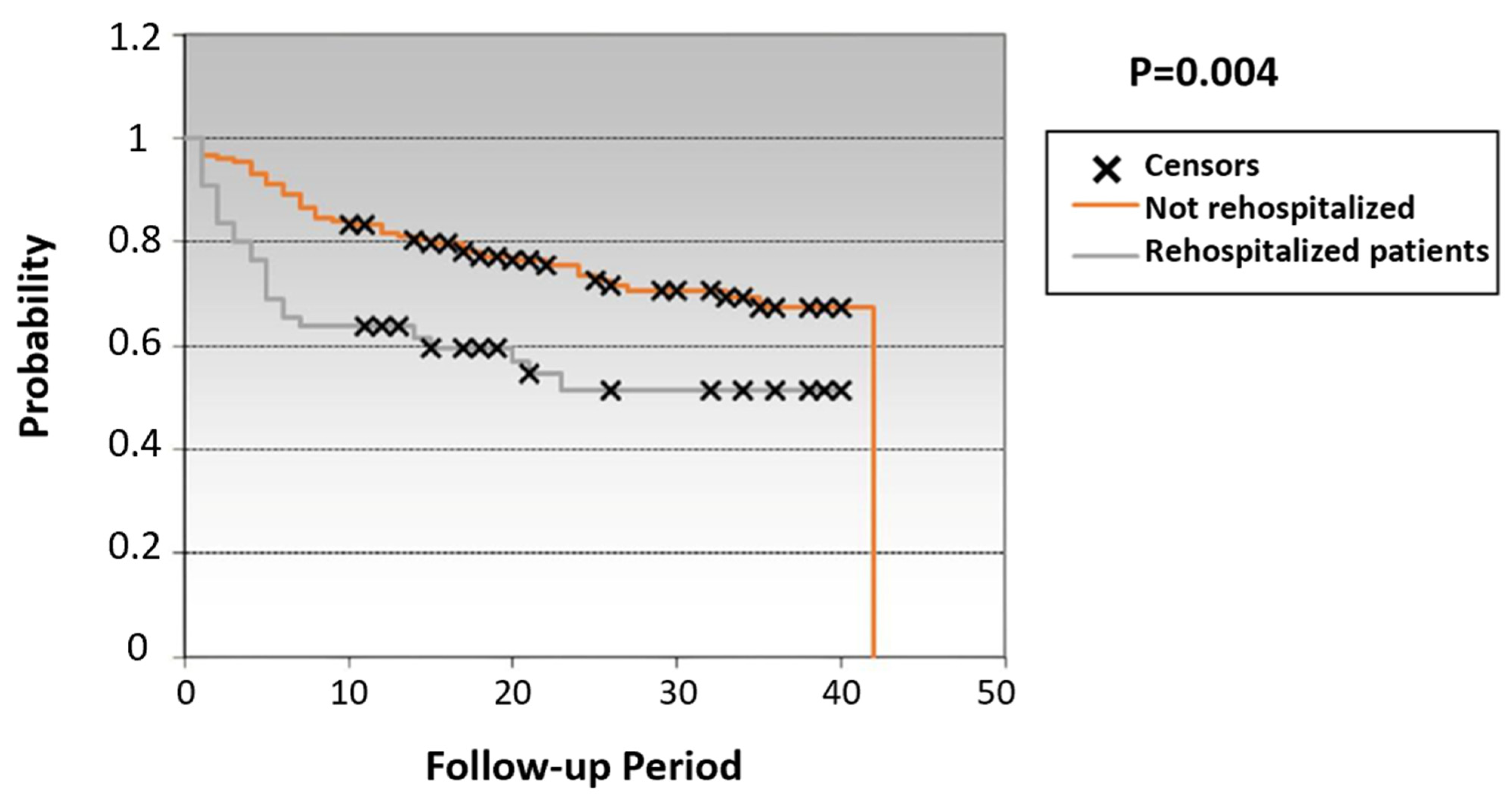 The main question of the study is if early rehospitalization had negative prognostic importance during long-term follow-up. We found that rehospitalization during the first 3 months increased mortality in univariate COX with RR of 1.86 [1.08–3.2] and multiple COX with RR of 2.36 [1.2–4.7], thus supporting the independent nature as an unbeneficial prognostic factor. Association between rehospitalization was analyzed in a few studies. Arundel et al. showed a link between early hospitalizations and increased mortality in these patients, but the recruitment of patients was conducted in 1998–2002, before the introduction of contemporary treatment [