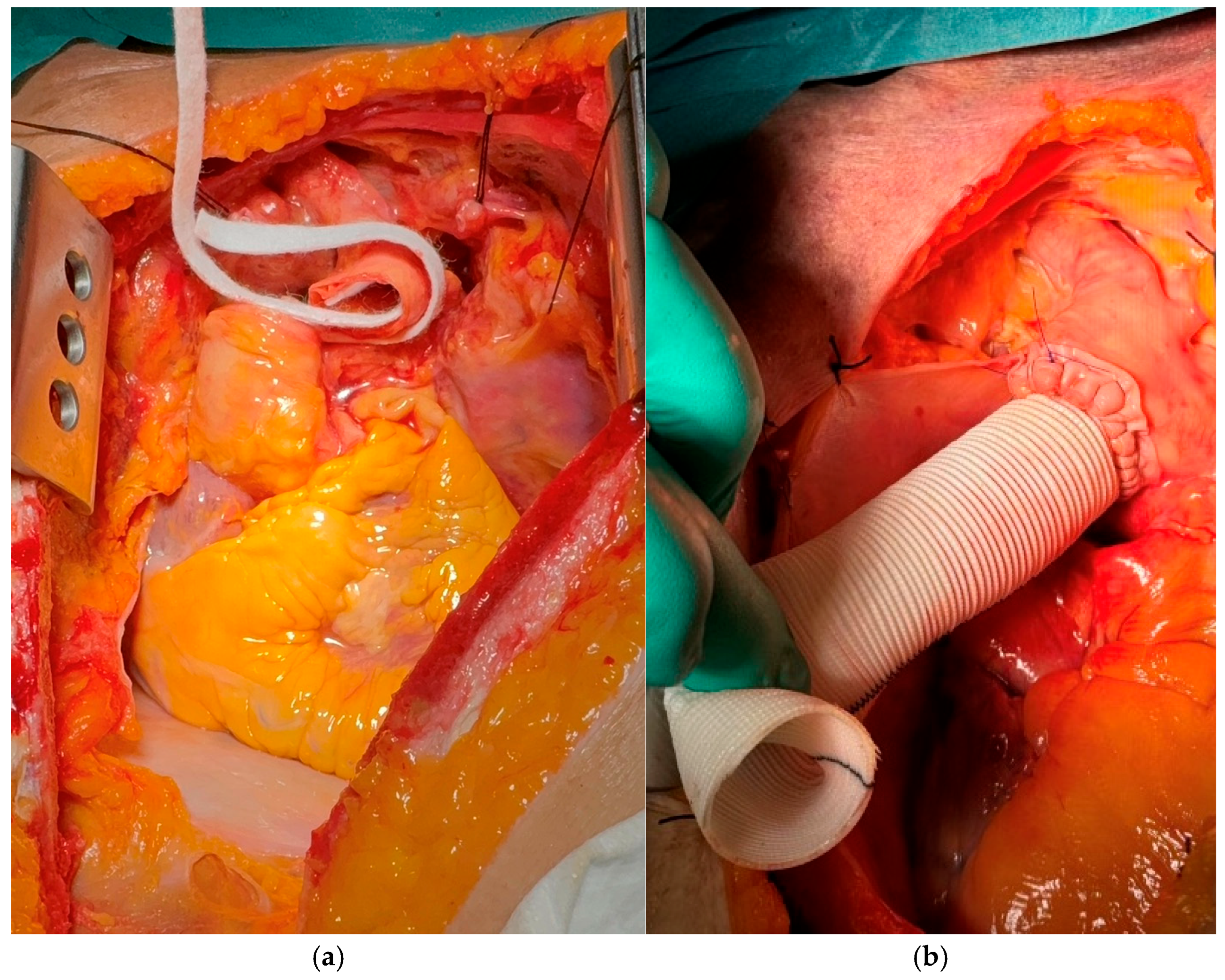 The use of pericardial strips is likely associated with slightly greater procedural complexity, as the softer and more elastic nature of pericardium, compared with the stiffer felt, makes it more challenging to handle and suture. This is reflected by somewhat longer anastomotic times, although the difference was not statistically significant. Whether this discrepancy has clinical relevance remains unclear. Nevertheless, this finding highlights the importance of simulation and training—such as on cadaver models—in cardiac surgery, especially for low-volume centers [