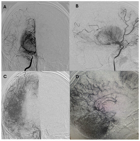 Angiographic follow-up was available for all revascularized hemispheres (n = 14) and was performed approximately 3–6 months postoperatively, with repeat studies at 12–18 months in selected cases with persistent or recurrent symptoms. Collateral vessel formation was graded according to the Matsushima system (grades A, B, and C) to evaluate revascularization efficacy.