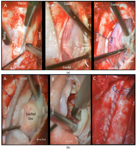 - LeRoy, T.E.; Ruiz-Cardozo, M.A.; Molina, C.A. Transdural Ventral Sling Technique for Calcified Thoracic Disk Herniations. World Neurosurg. 2024, 183, 123–127. [Google Scholar] [CrossRef] [PubMed]