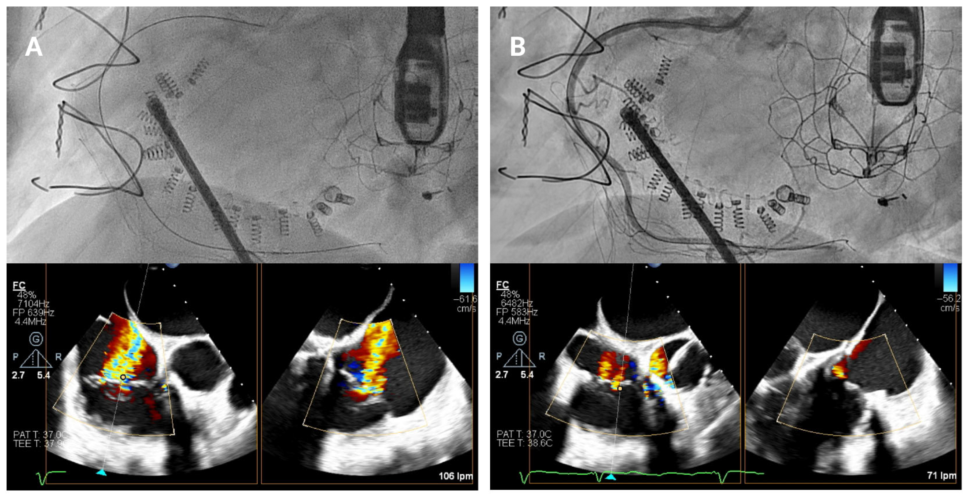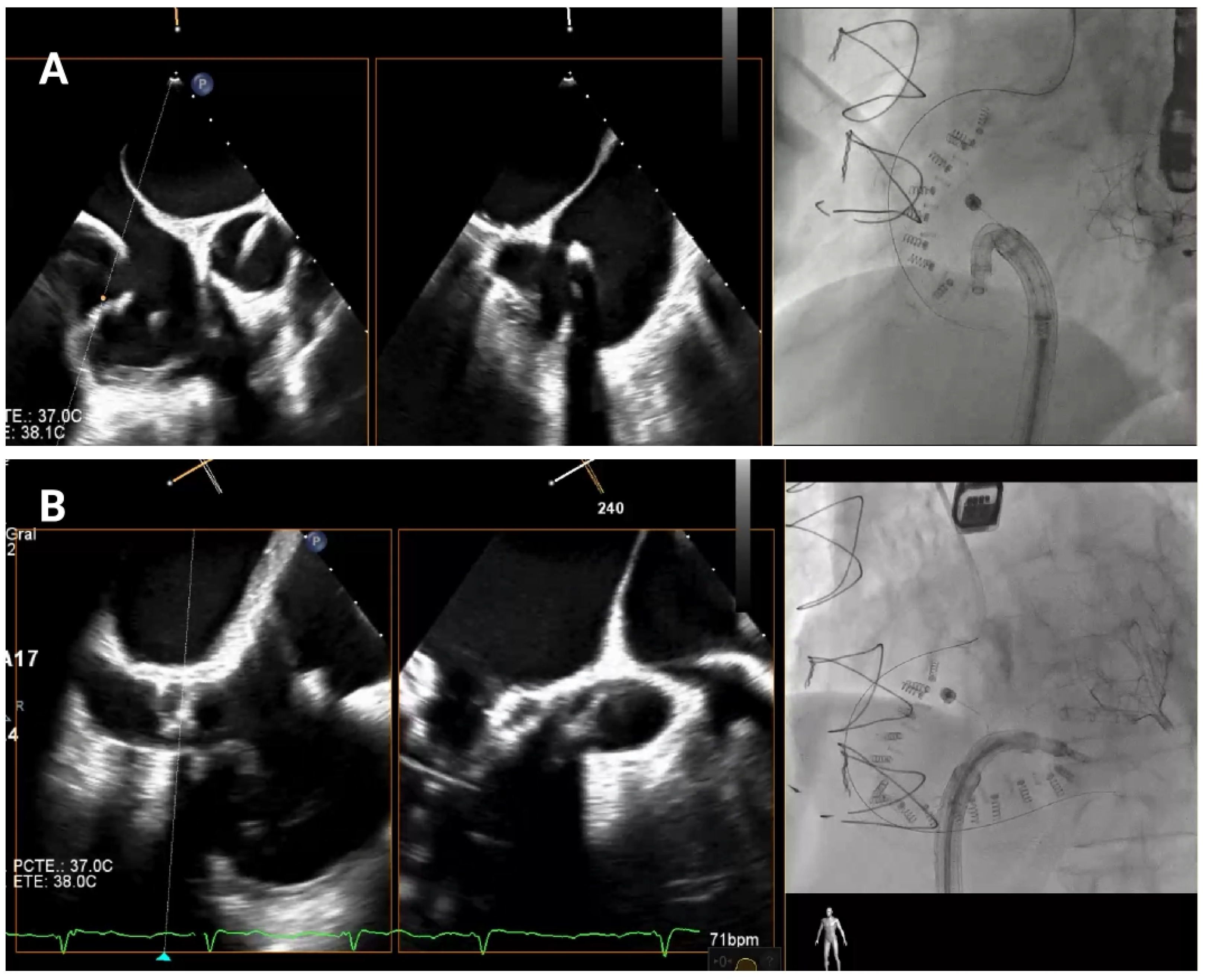 https://www.mdpi.com/article/10.3390/jcm14217772/s1, Video S1. Illustration of a “push-pull” test under echocardiographic guidance. Video S2. Illustration of a hooking maneuver (90° angle between the IC and the TSS before the 9th anchor) under fluoroscopic guidance.