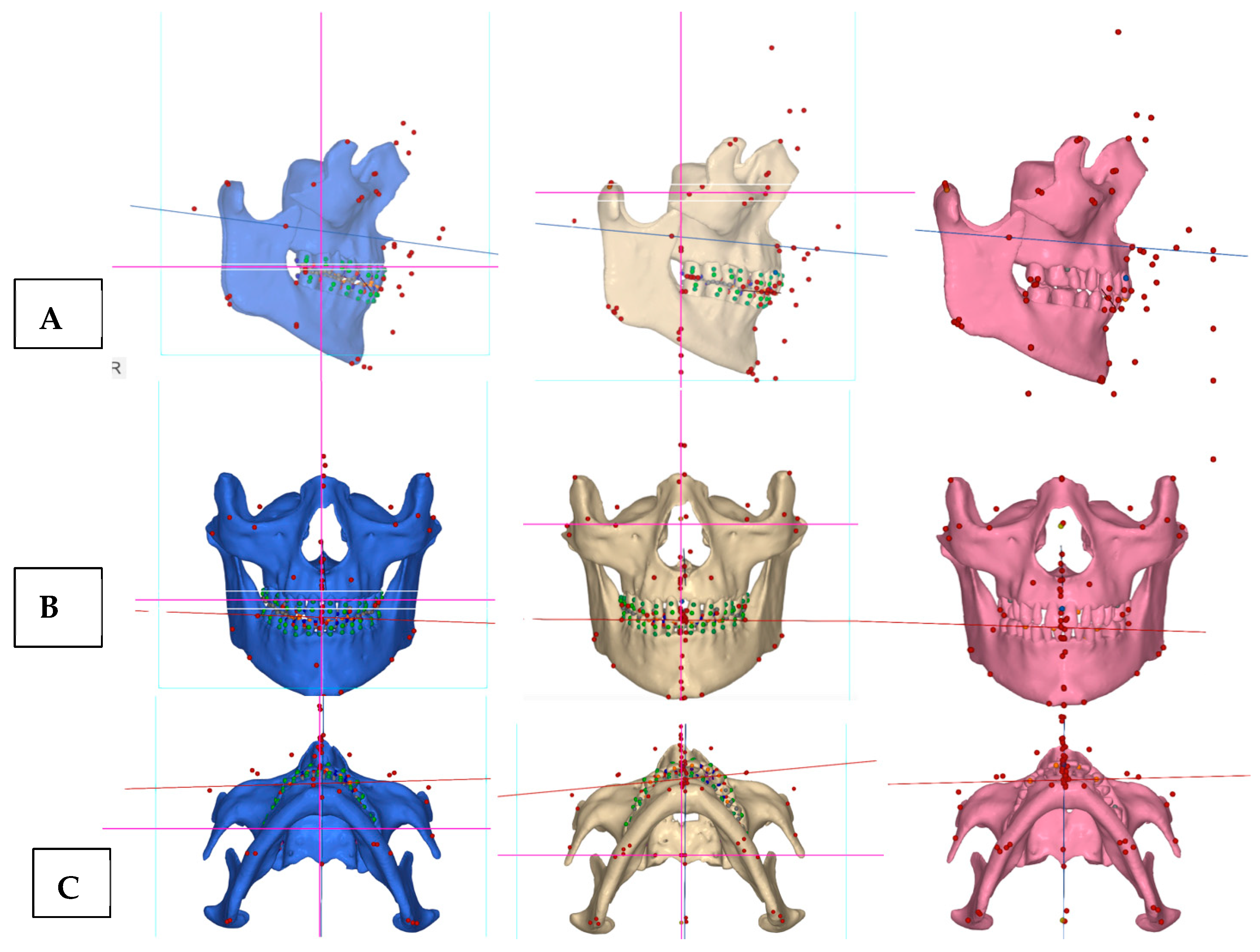 - Büyükçavuş, M.H.; Albayrak, E.; Findik, Y. Miniscrew-assisted Rapid Palatal Expansion Before Orthognathic Surgery for a Patient with Laterognathia. J. Craniofac. Surg. 2025, 36, e237–e241. [Google Scholar] [CrossRef] [PubMed]