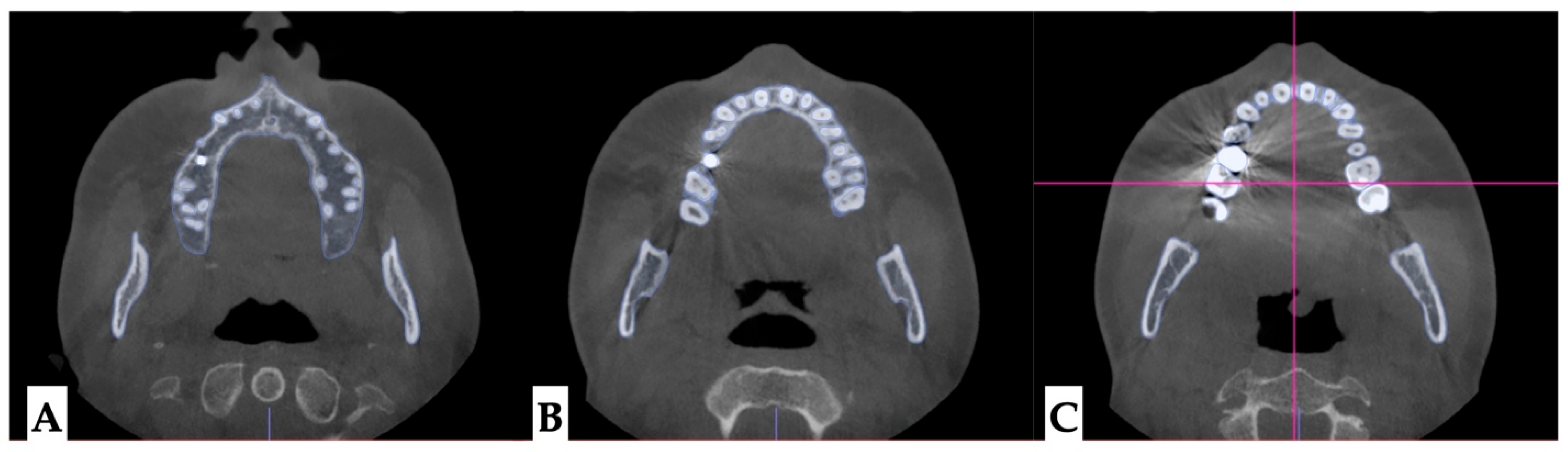 Chicago/Turabian StyleKoval, Svitlana, Viktoriia Kolesnyk, and Daria Chepanova. 2025. "Asymmetry Management During 3D-Guided Piezocorticotomy-Assisted MARPE Treatment with Direct Printed Aligners: Case Report" Journal of Clinical Medicine 14, no. 21: 7773. https://doi.org/10.3390/jcm14217773