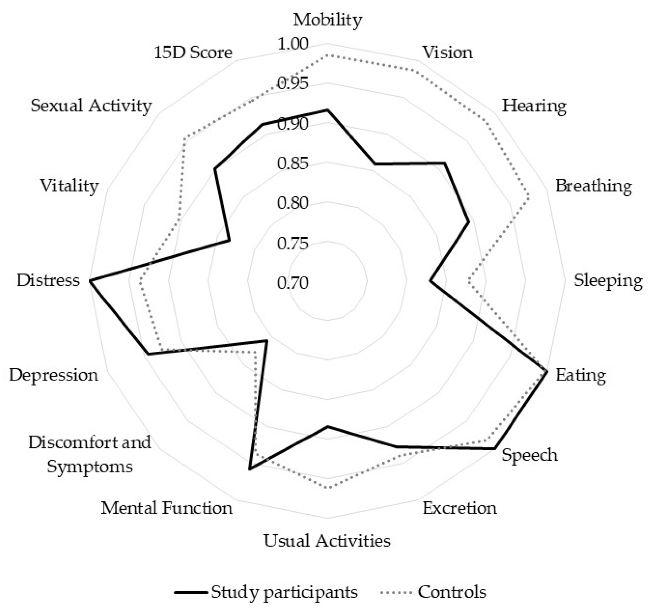 22. Sintonen, H. The 15D instrument of health-related quality of life: Properties and applications. Ann. Med. 2001, 33, 328–336. [Google Scholar] [CrossRef]