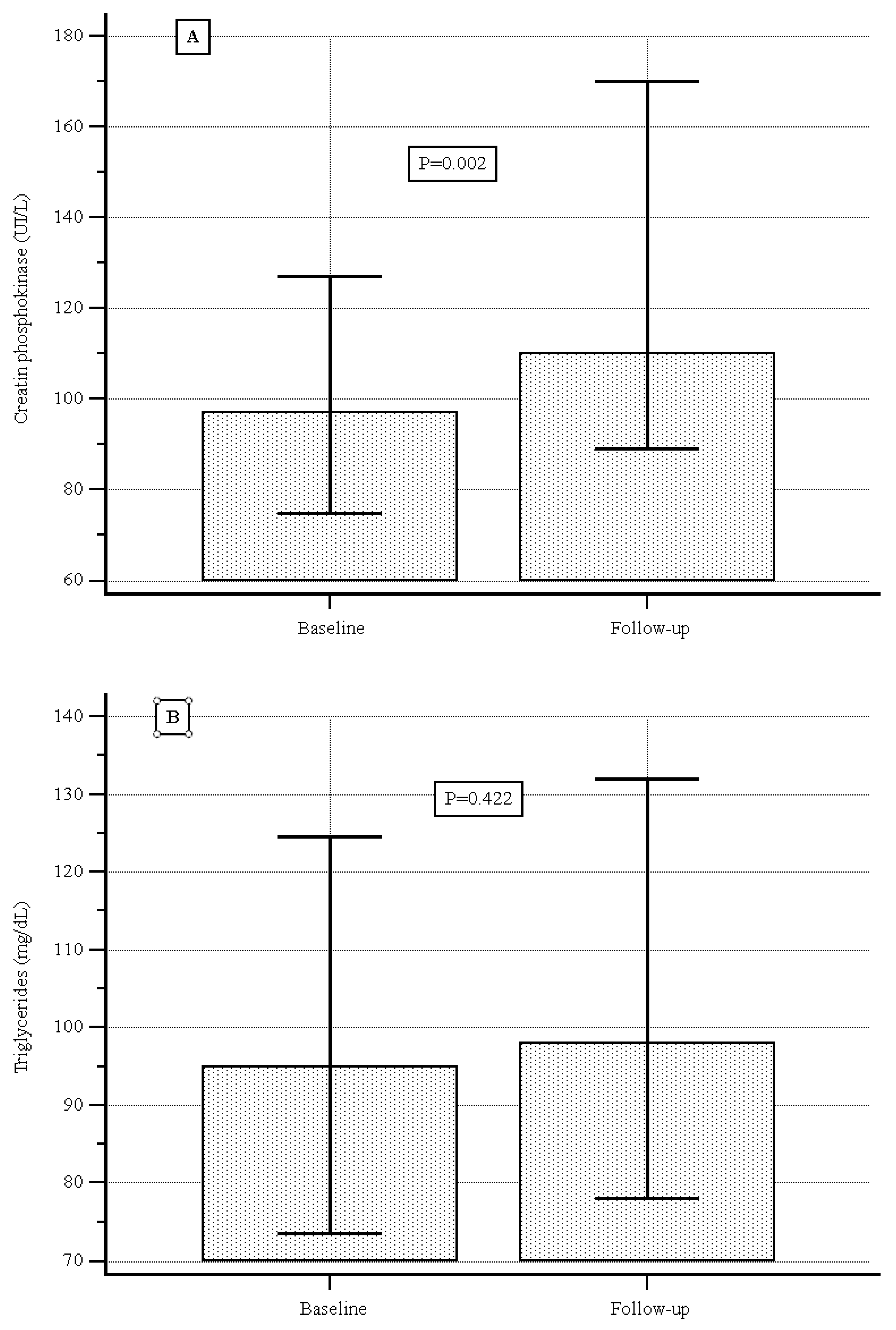 | Median (IQR) creatine phosphokinase level (UI/L) | 97.0 (74.7–127.0) |