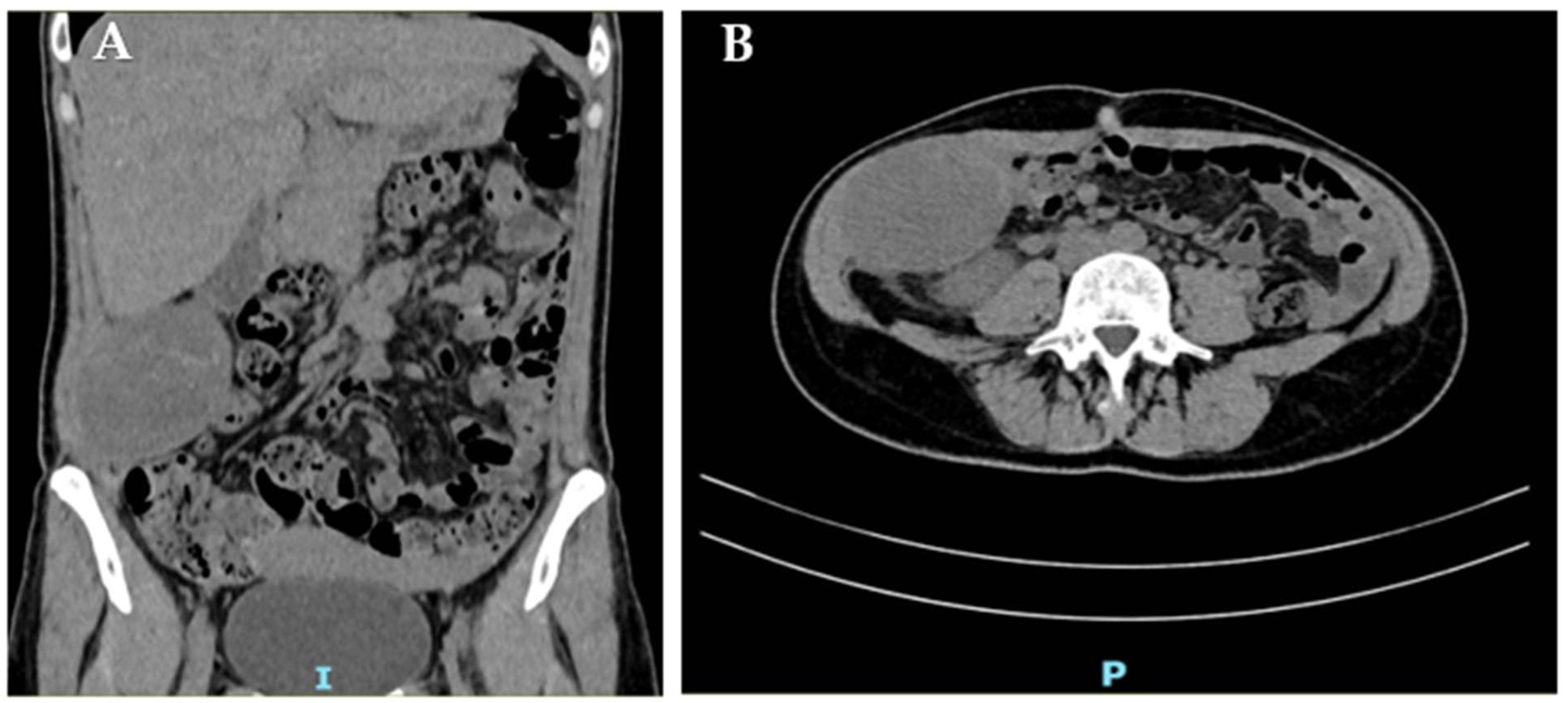 - Arima, K.; Komohara, Y.; Uchihara, T.; Yamashita, K.; Uemura, S.; Hanada, N.; Baba, H. A Case of Mesenteric Desmoid Tumor Causing Bowel Obstruction After Laparoscopic Surgery. Anticancer. Res. 2022, 42, 381–384. [Google Scholar] [CrossRef]